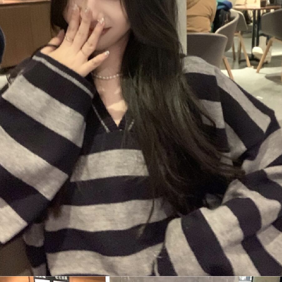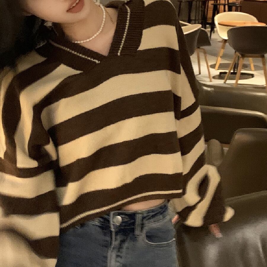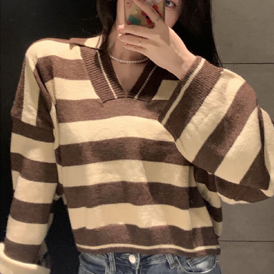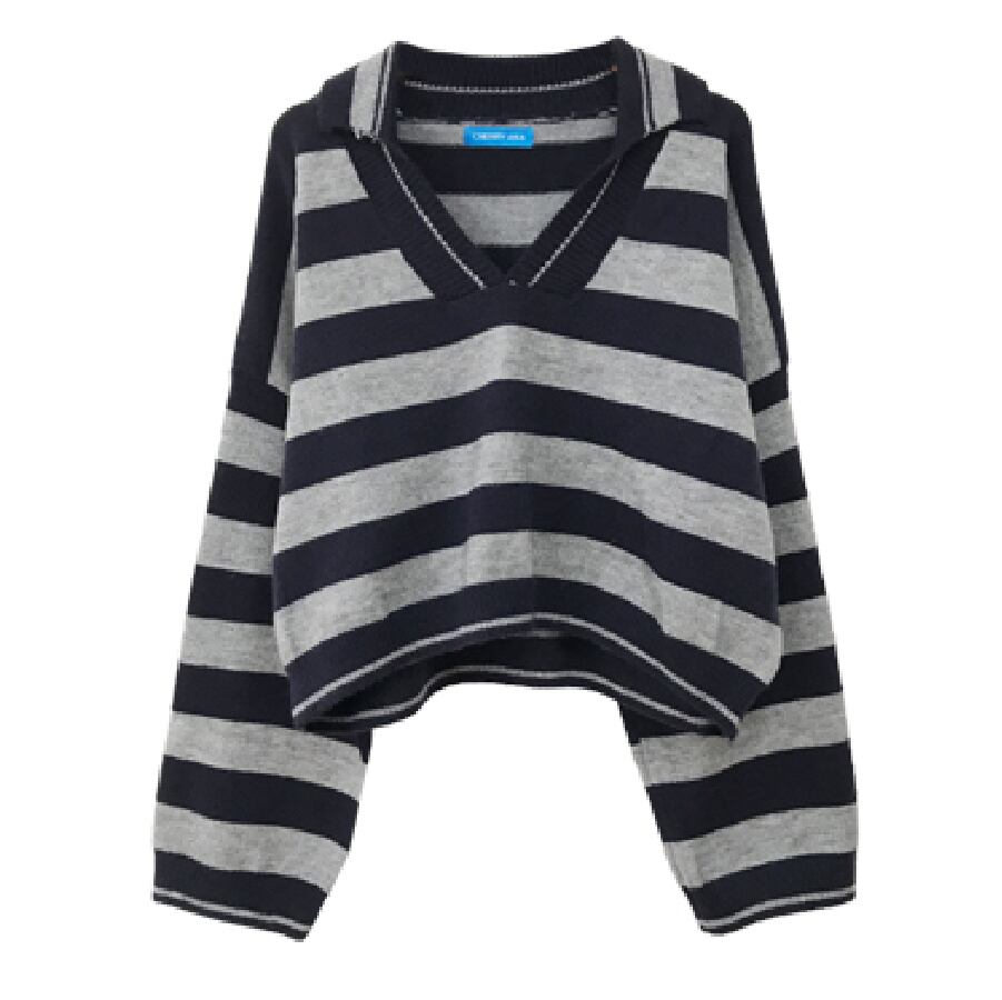 【韓国通販 dgo】ストライププルオーバーニット 2colors コーヒーカラー/グレー(W1769)