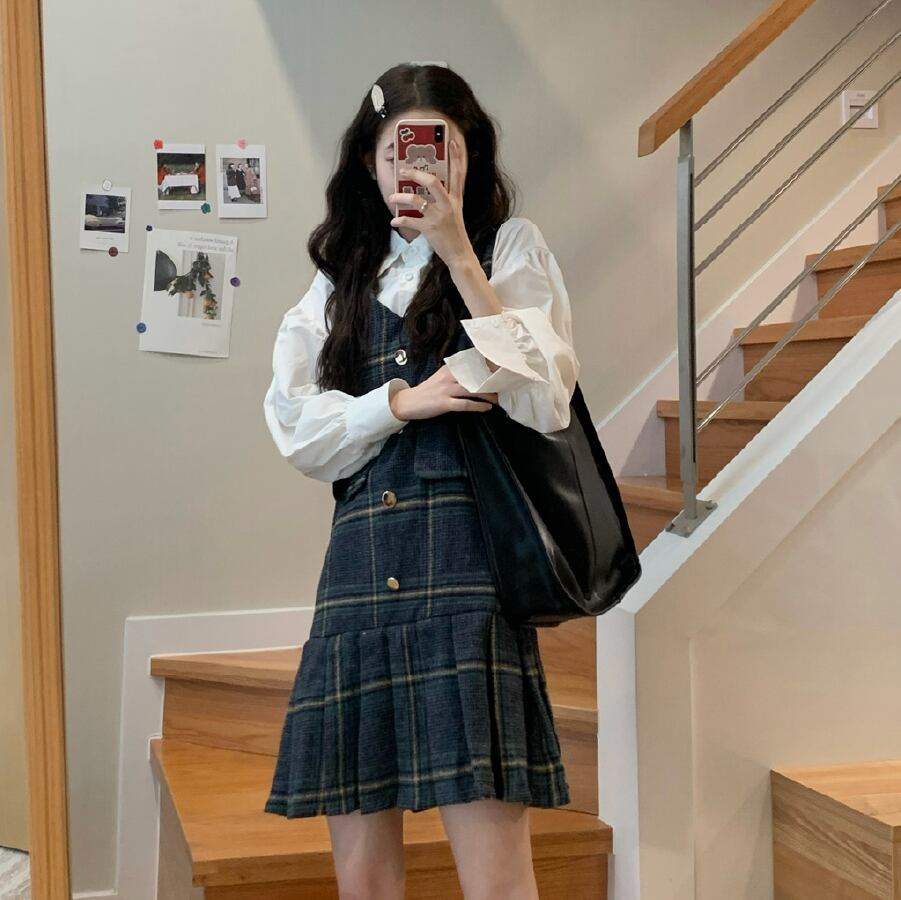 【韓国通販 dgo】チェッカー柄ダブルフラップポケット付き ワンピース(W1765)