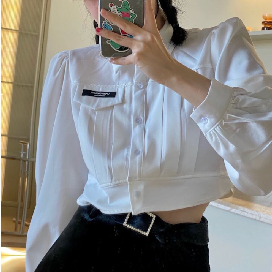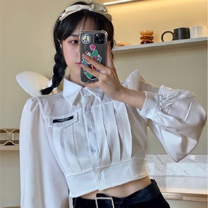 【韓国通販 dgo】パワーショルダーポロ襟ショートシャツ ホワイト(W1759)