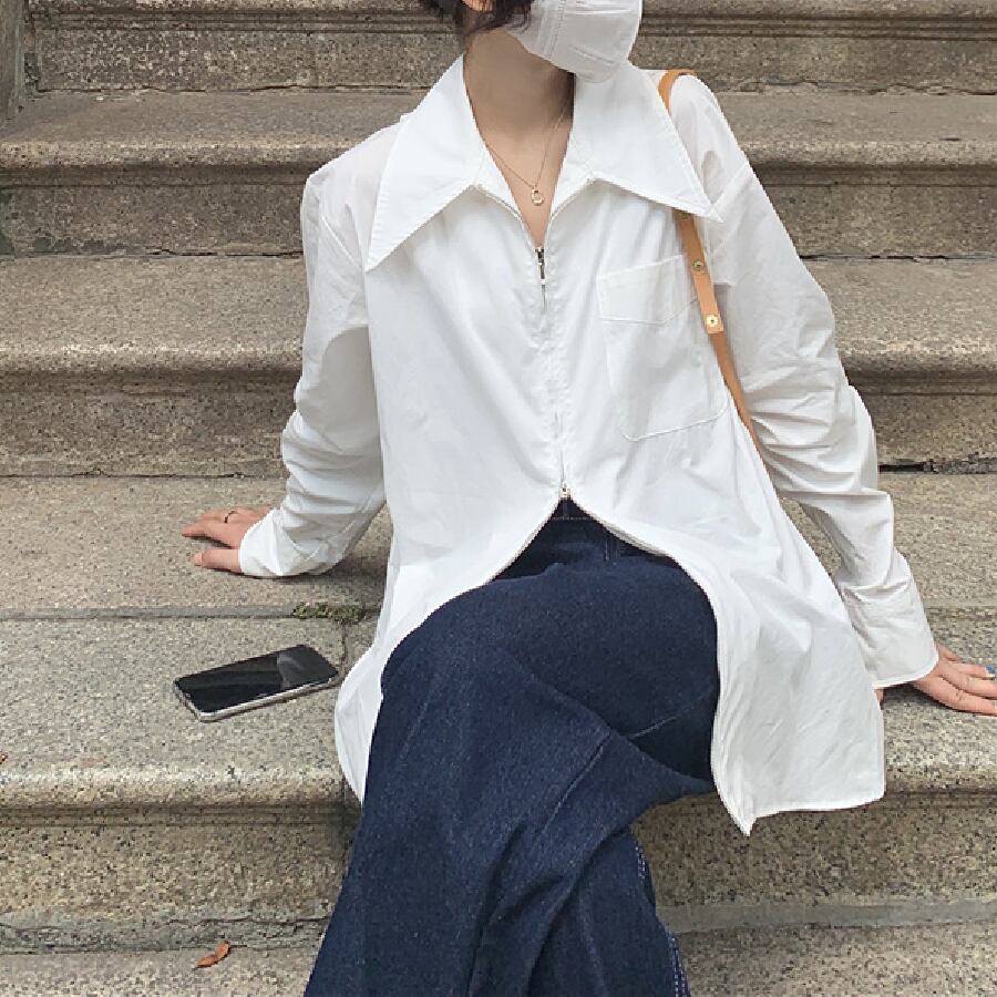 【韓国通販 dgo】ポロ襟ZIPシャツ 2colors ホワイト/ブルー(W1756)