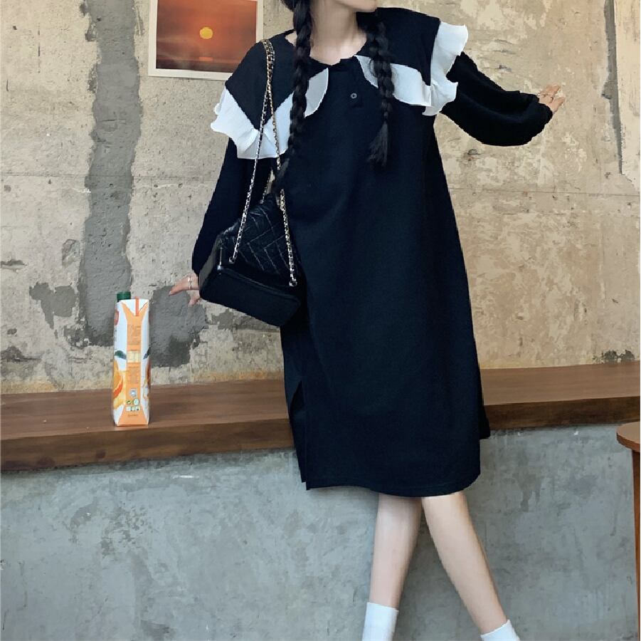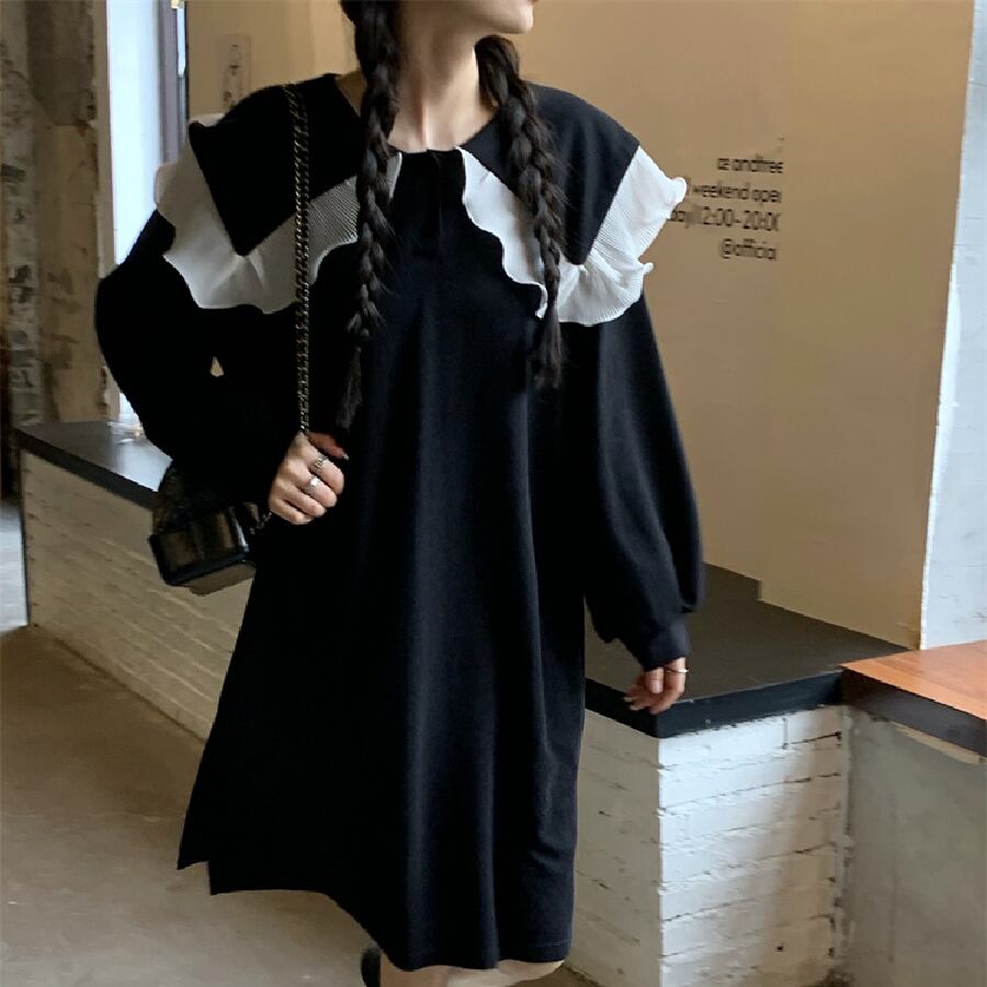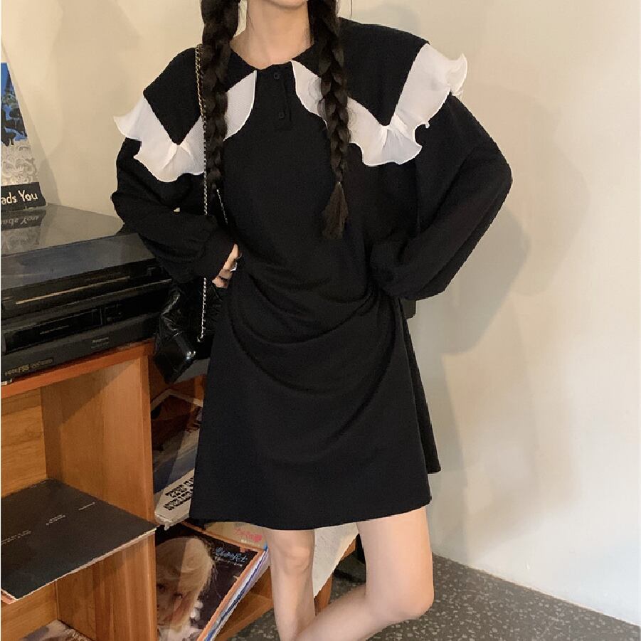 【韓国通販 dgo】ビッグカラーショートワンピース ブラック(W1751)