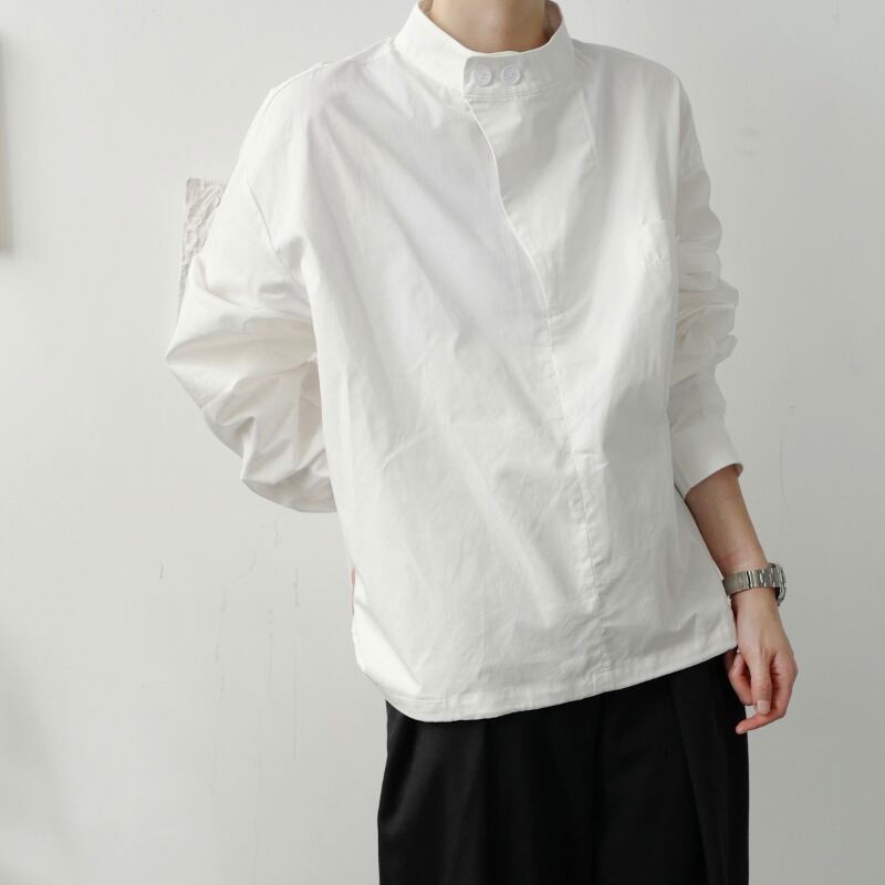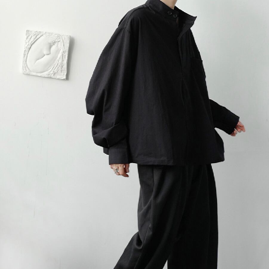 【韓国通販 dgo】バンドカラー無地シャツジャケット 2colors ホワイト/ブラック(M1742)気分はジャケット!