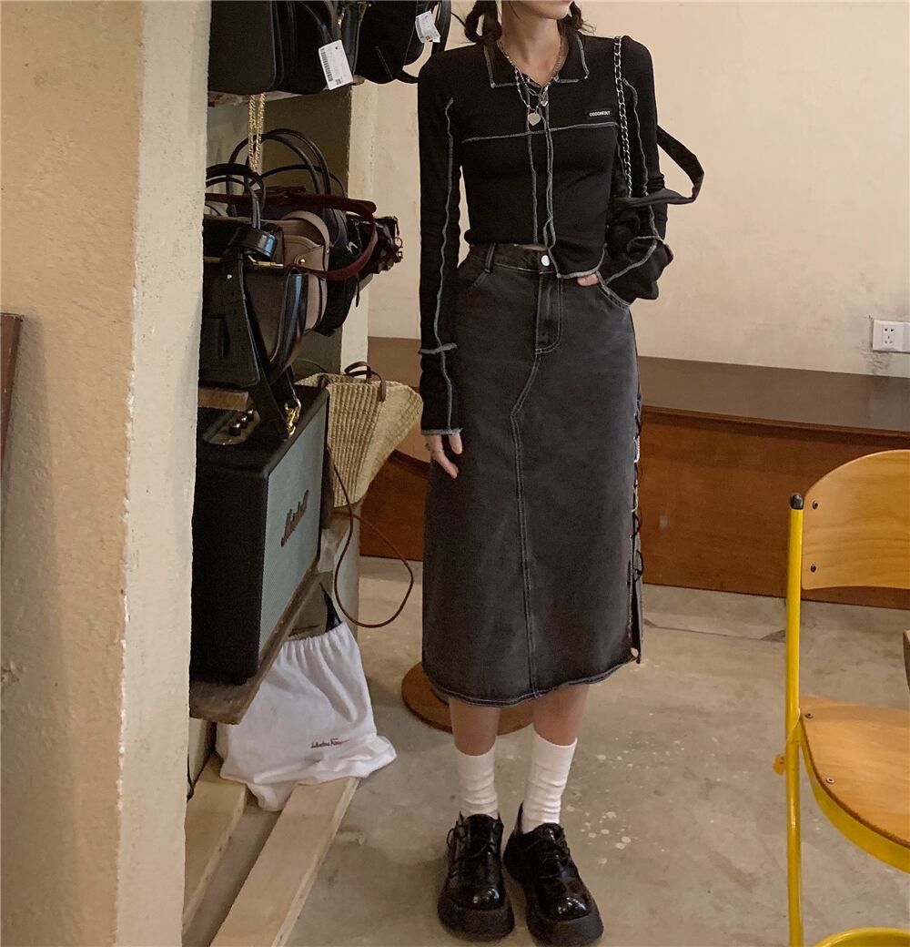 【韓国通販 dgo】ポロ襟ブラックショートトップス(W1811)