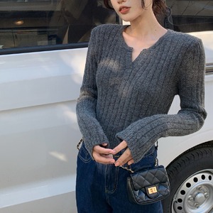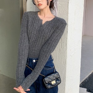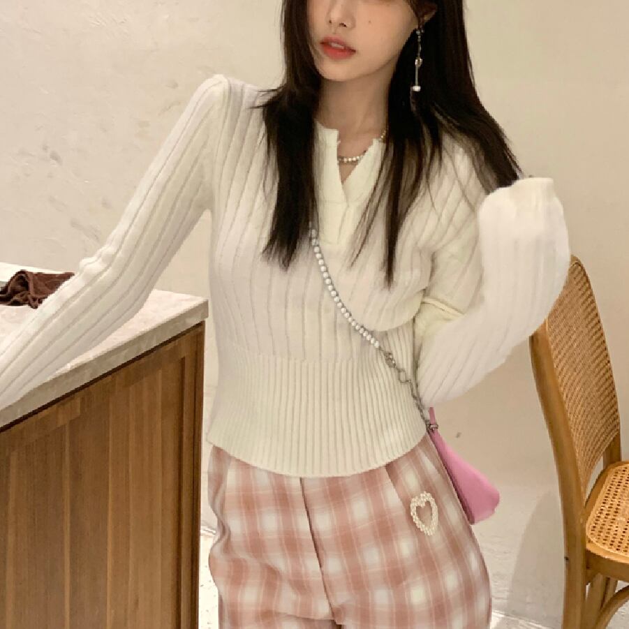【韓国通販 dgo】リブニットプルオーバー 5colors ホワイト/グレー/ブラウン/ブルー/ブラック(W1810)