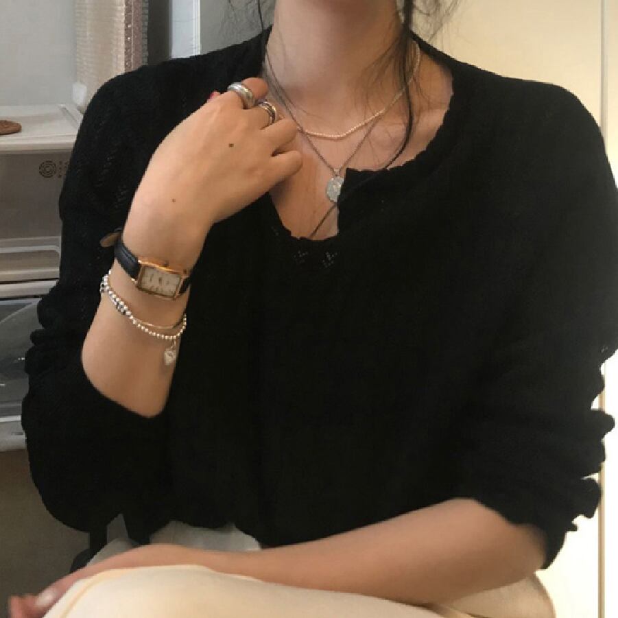 【韓国通販 dgo】メッシュニットトップス 2colors ホワイト/ブラック(W1809)