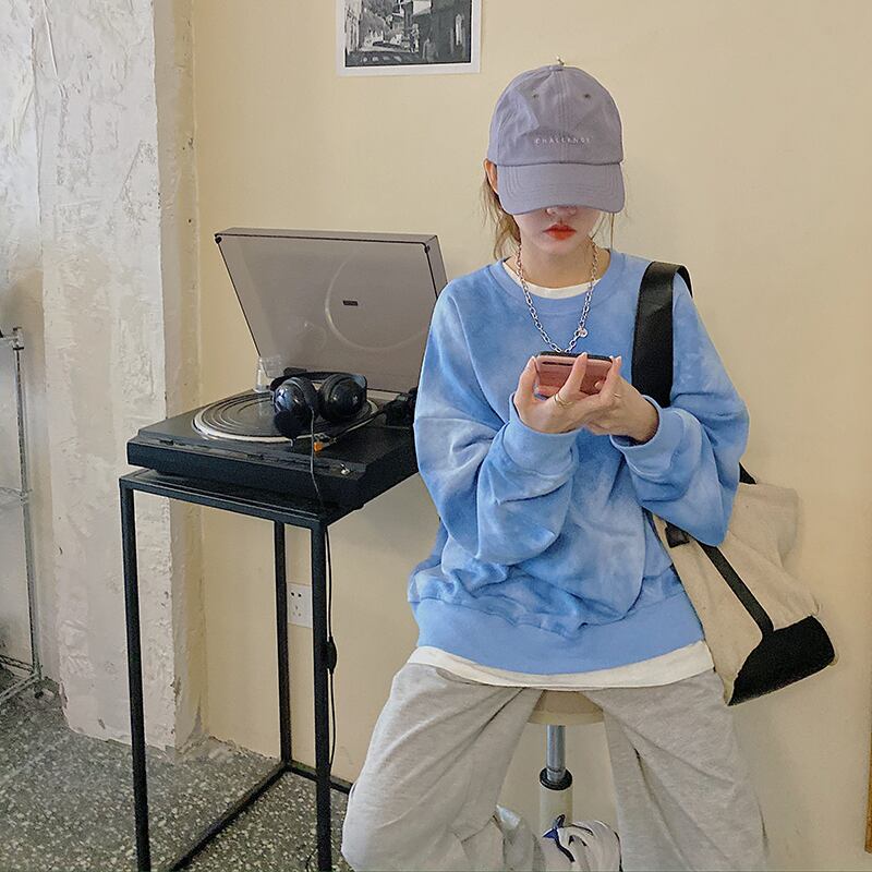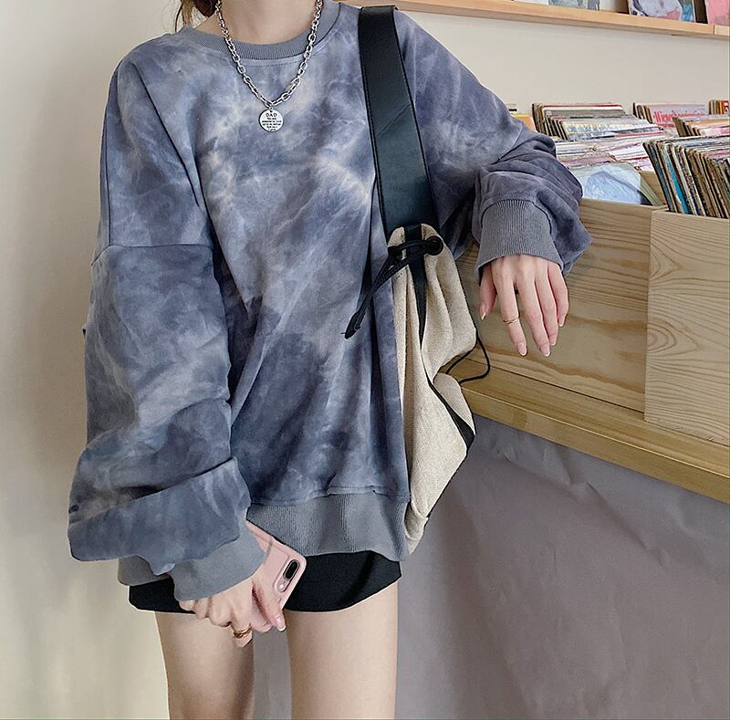 【韓国通販 dgo】タイダイ柄プルオーバー 2colors ブルー/ブラック(W1805)