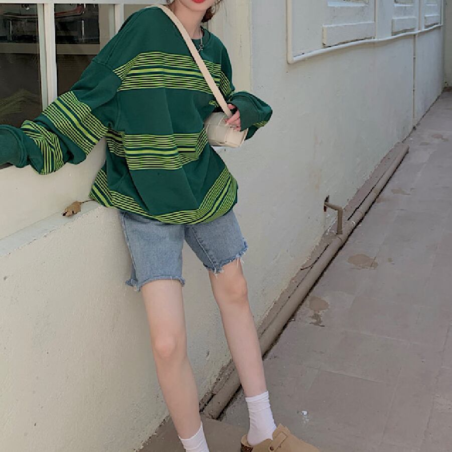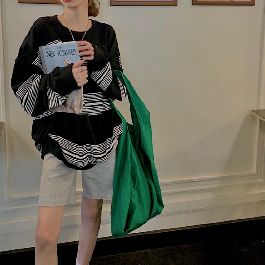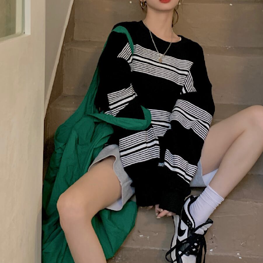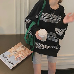 【韓国通販 dgo】バイカラーストライププルオーバー 2colors ブラック/グリーン(W1804)
