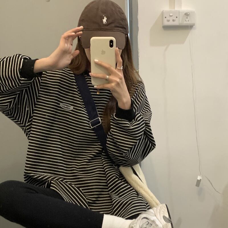 【韓国通販 dgo】ストライプオーバーサイズトップス 2colors ホワイト/ブラック(W1801)