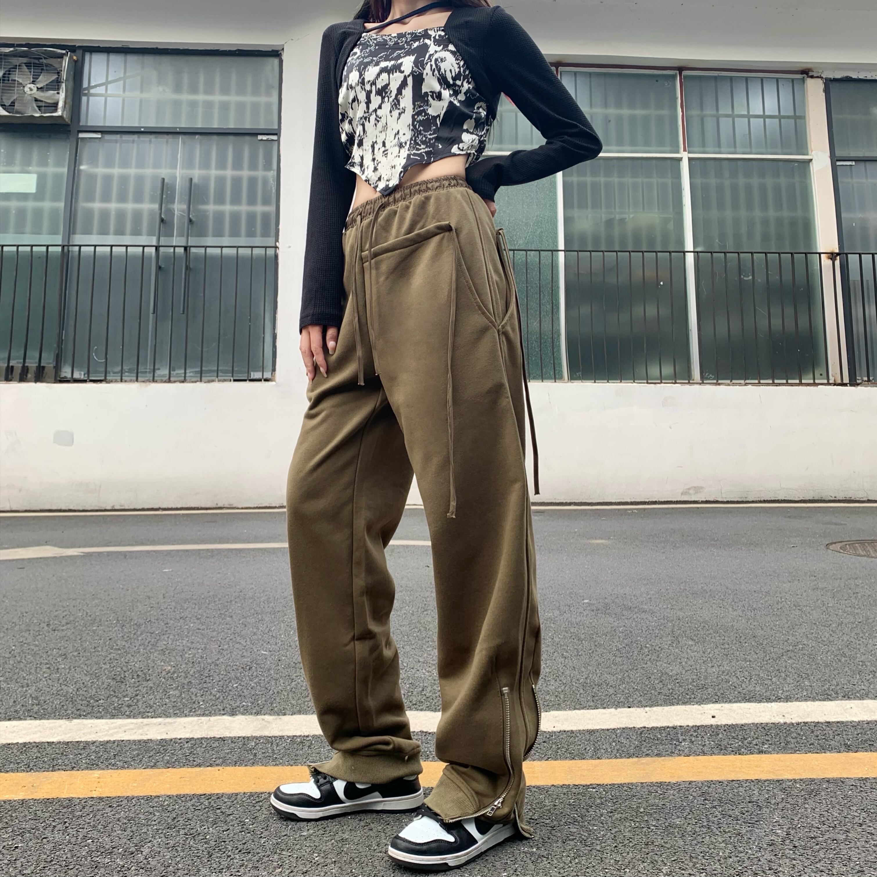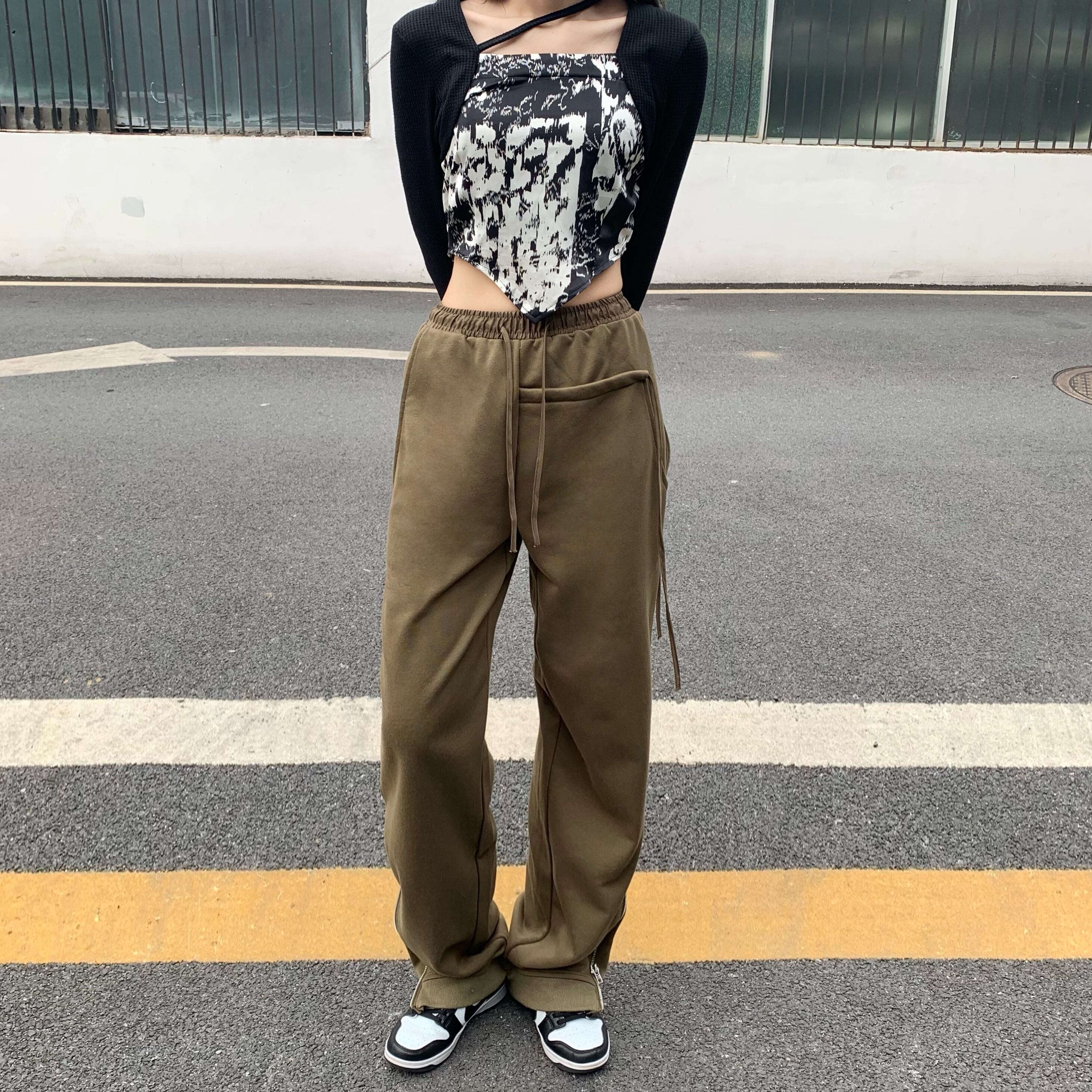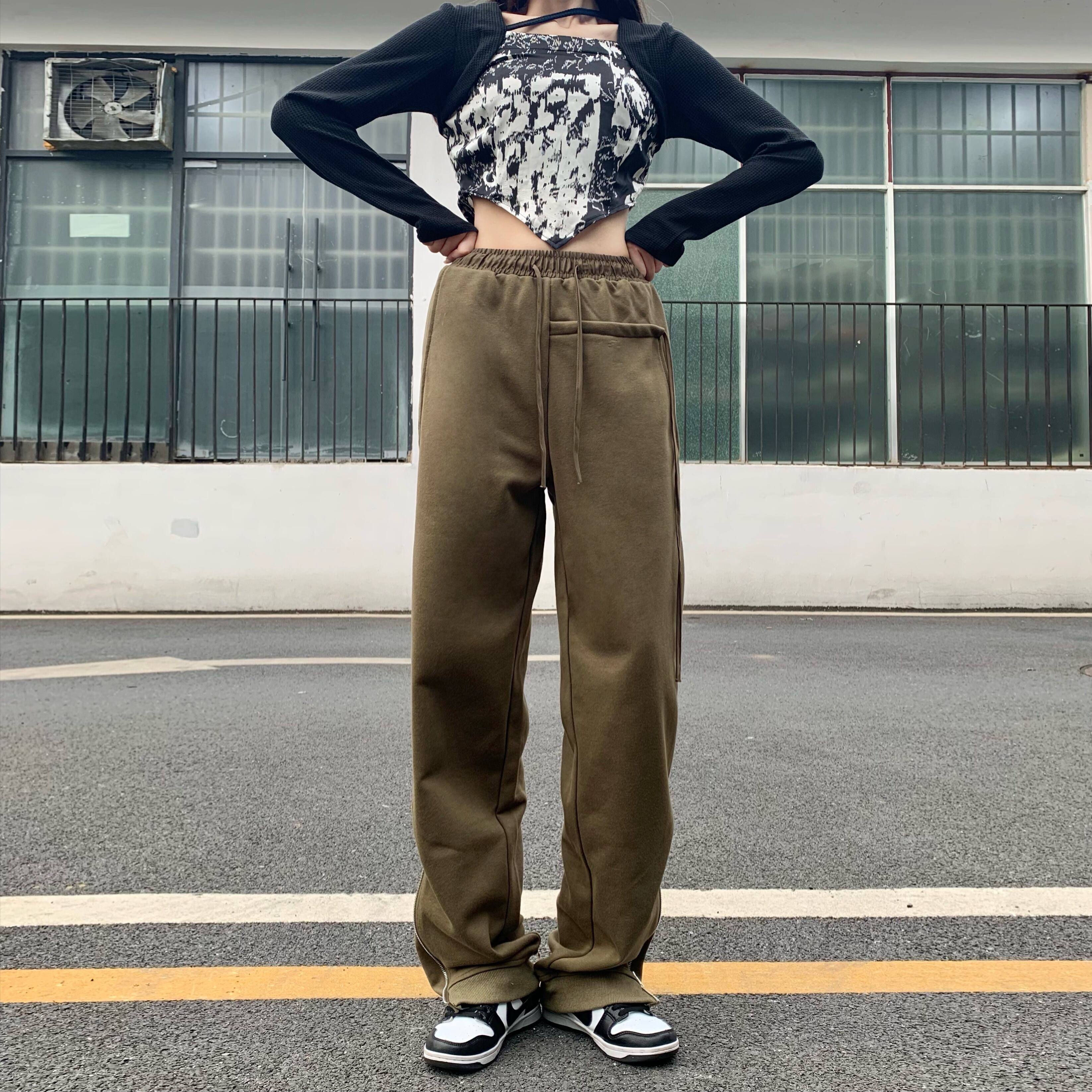 【韓国通販 dgo】ヴィンテージグリーン ワイドレッグストレートパンツ(W1800)