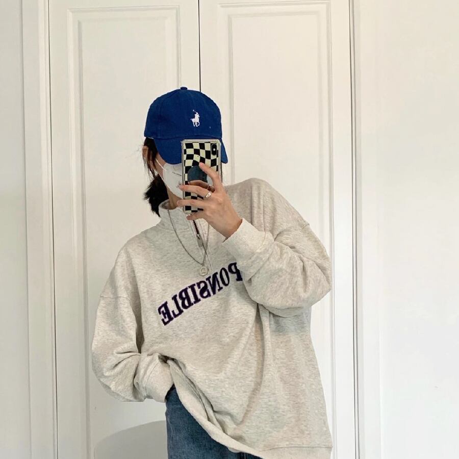 【韓国通販 dgo】ハーフZIP英ロゴスウェット グレー(W1795)