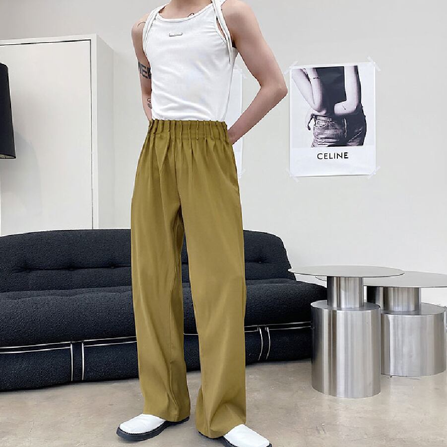 【韓国通販 dgo】ドレープストレートパンツ 2colors ブラック/アーミーグリーン(M1775)