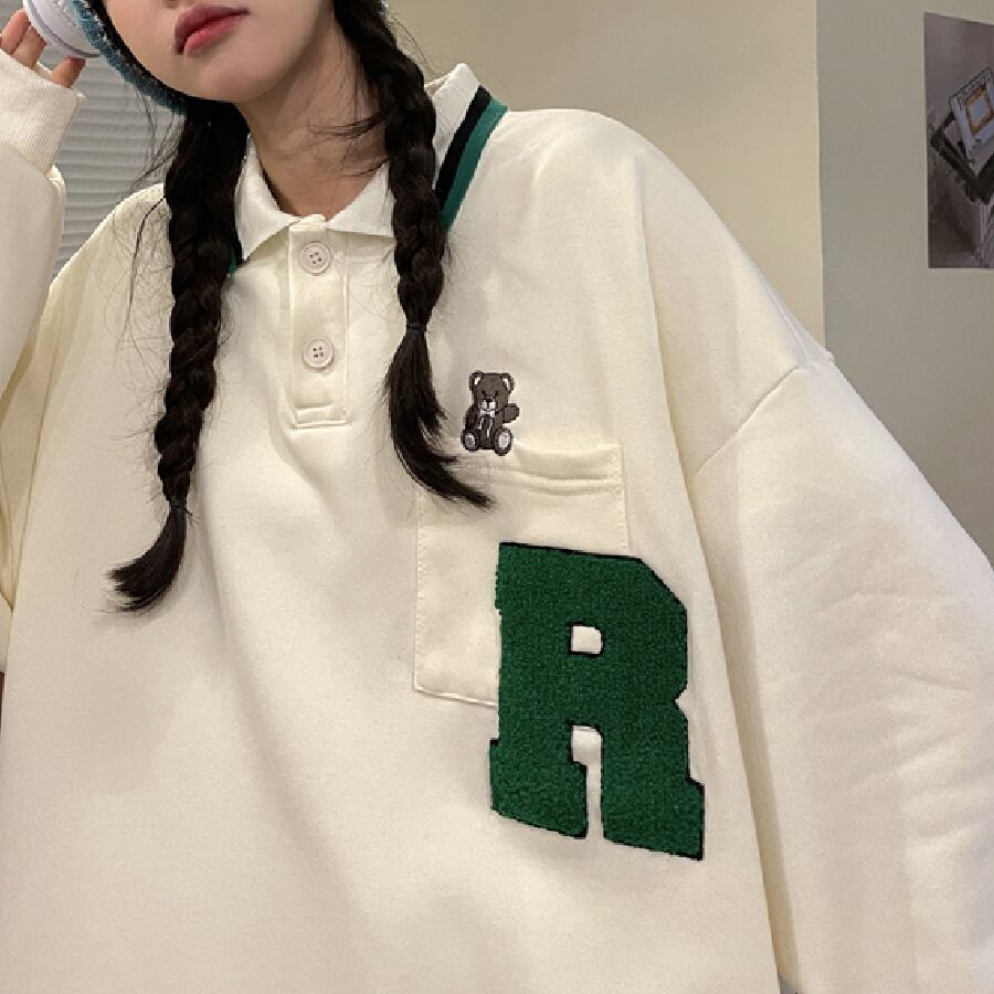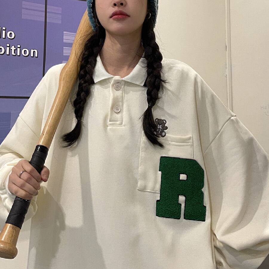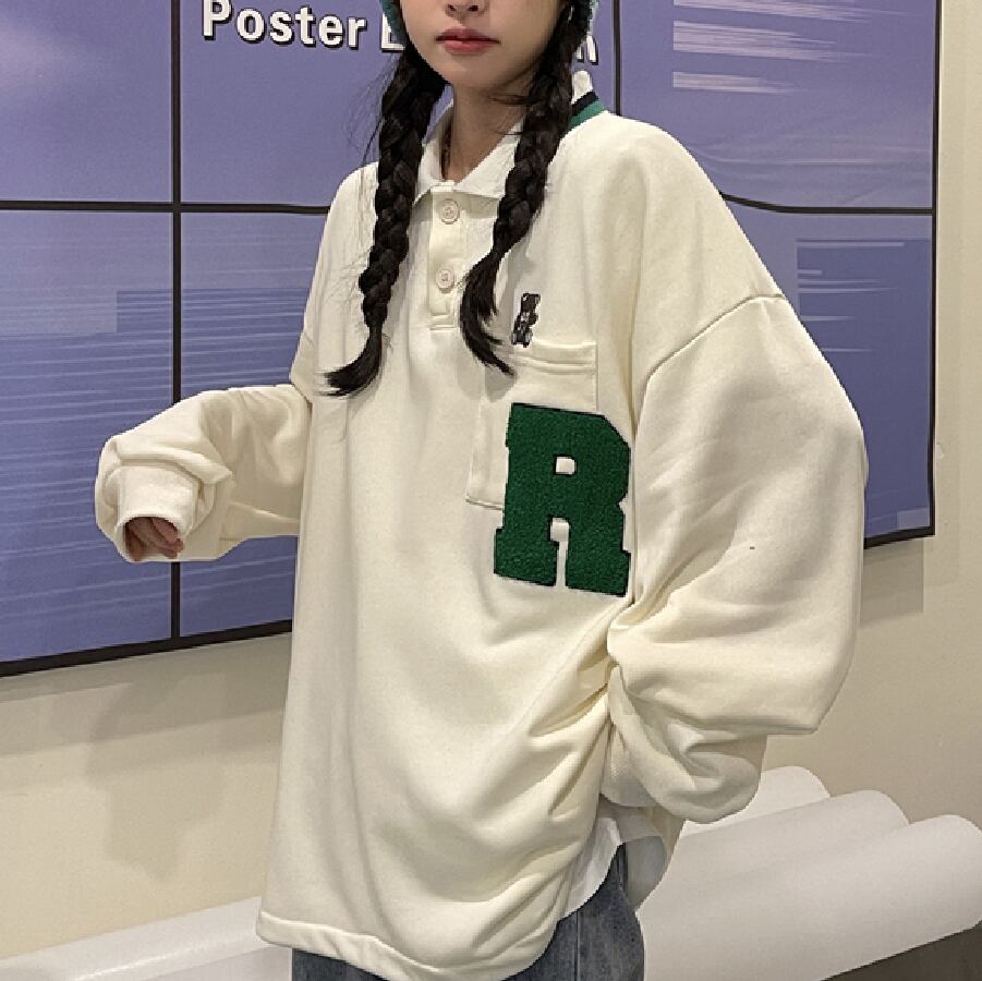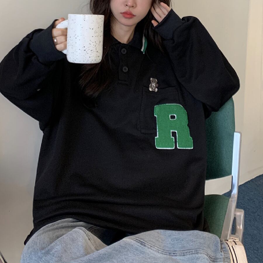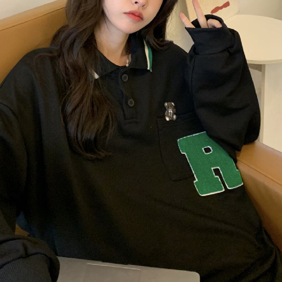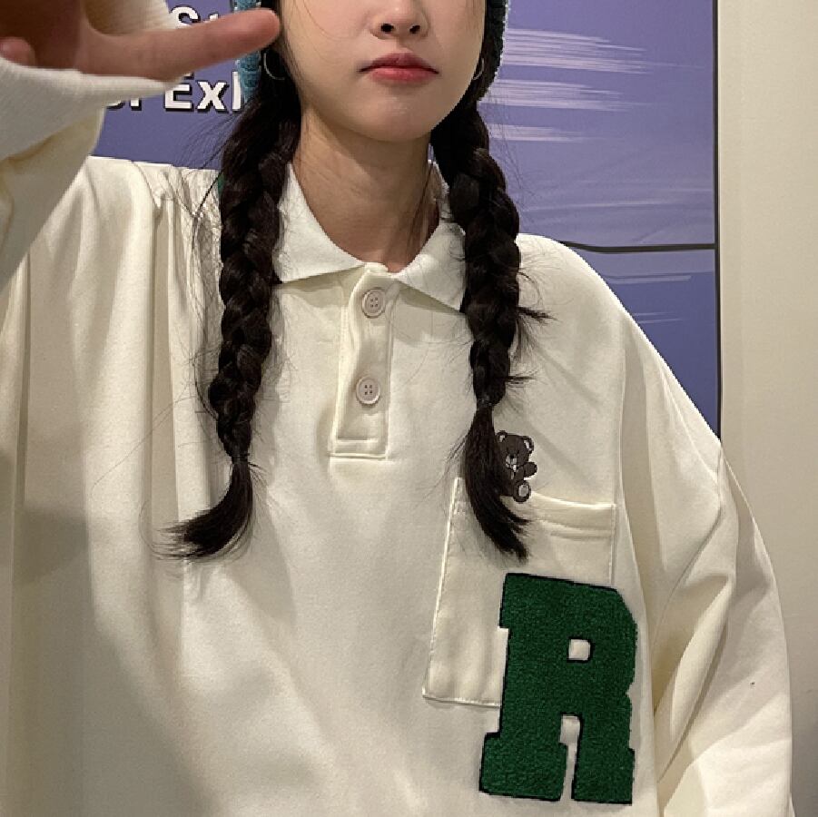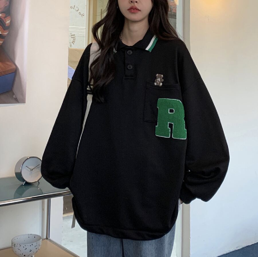 【韓国通販 dgo】オーバーサイズワンポイントロゴスウェット 2colors アイボリー/ブラック(W1834)
