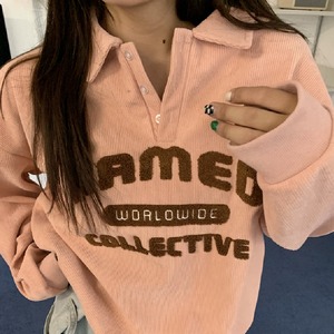 【韓国通販 dgo】ハーフボタン英ロゴトップス 3colors ピンク/アイボリー/ライトグリーン(W1828)
