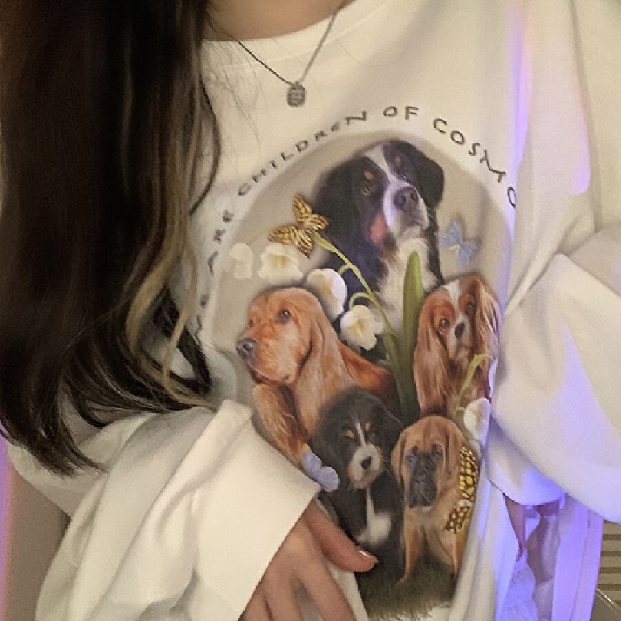 【韓国通販 dgo】アニマル柄クルーネックスウェット 2colors アイボリー/ホワイト(W1827)トレンドアイテム