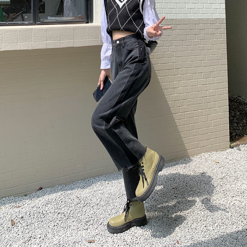 【韓国通販 dgo】サイドラインハイウエストジーンズ 2colors ブラック/ブルー(W1822)