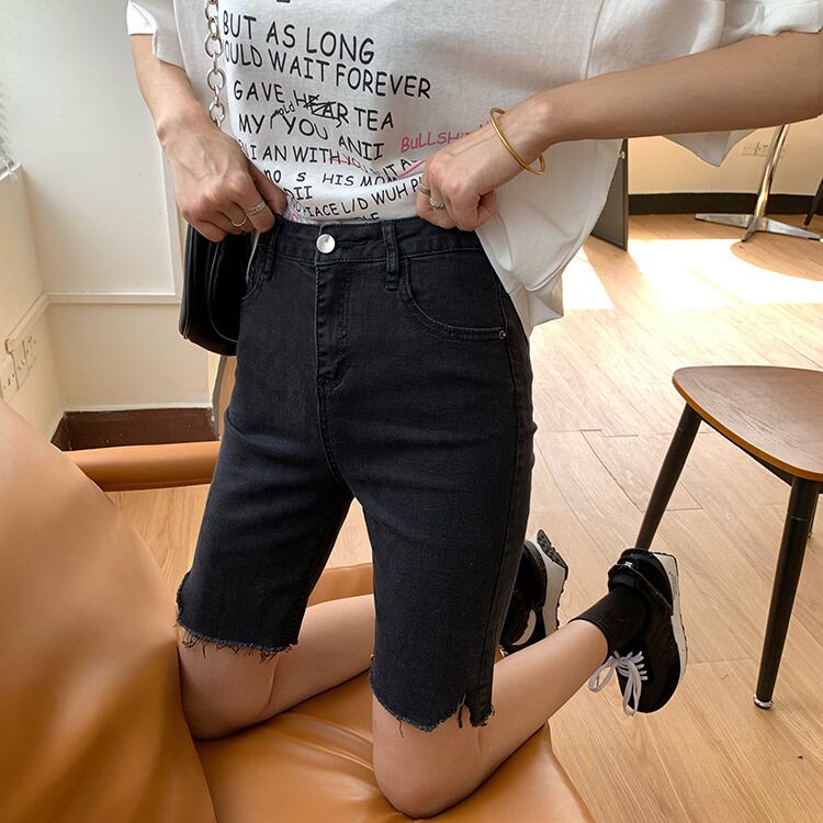 【韓国通販 dgo】ハイウエストブラックハーフジーンズ(W1820)