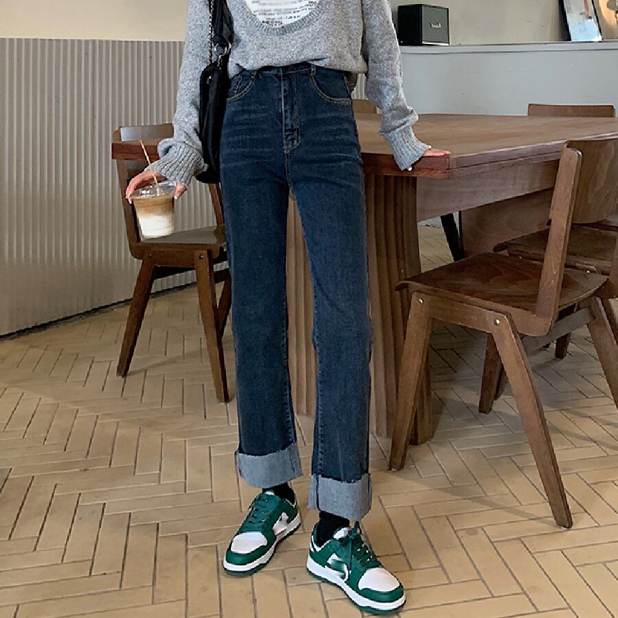 【韓国通販 dgo】ハイウエストロールアップジーンズ ブルー(W1818)