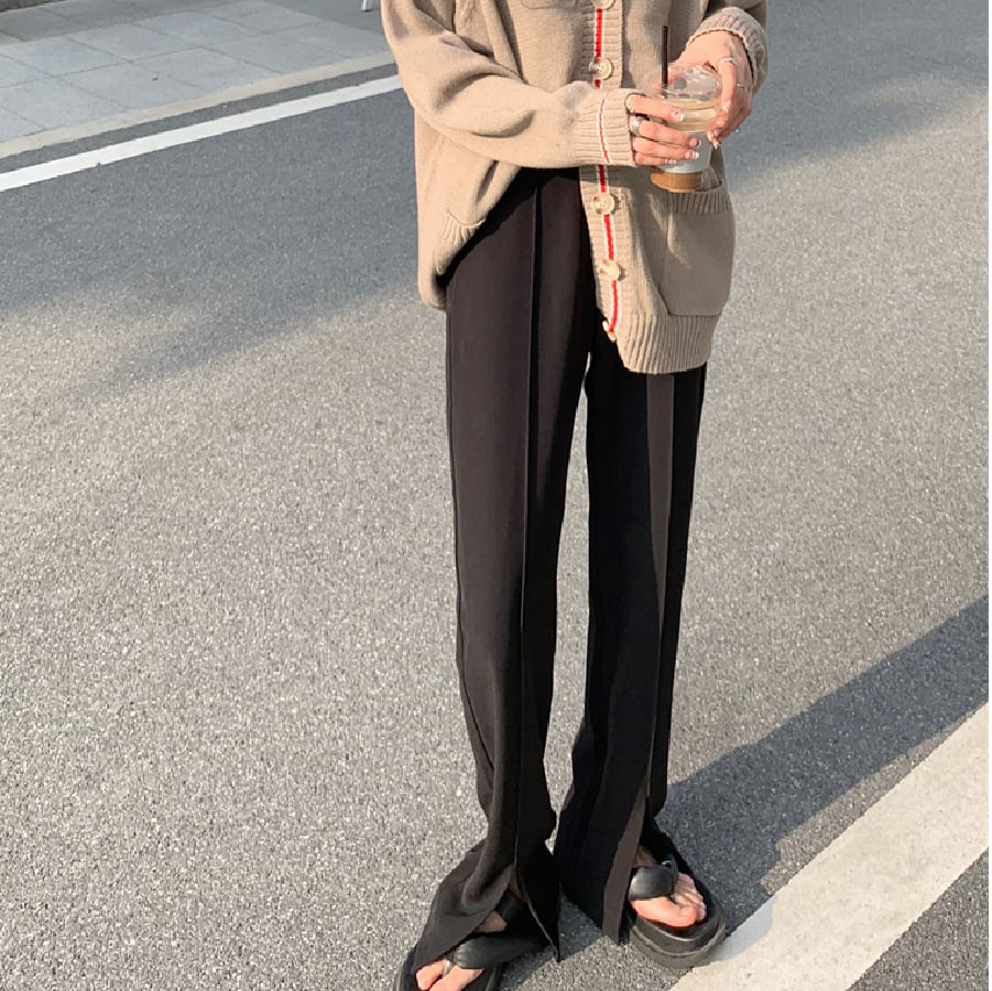【韓国通販 dgo】ハイウエストスプリットブラックパンツ(W1815)