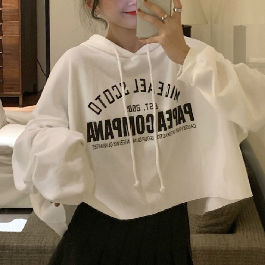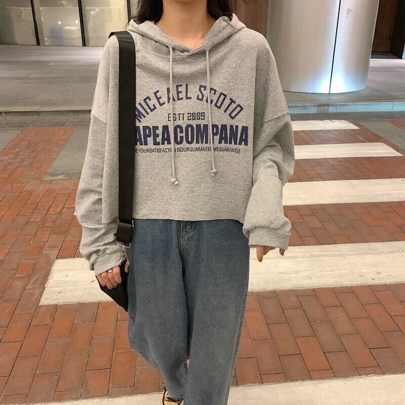 【韓国通販 dgo】レタープリントショートフーディー 2colors ホワイト/グレー(W1877)トレンドアイテム