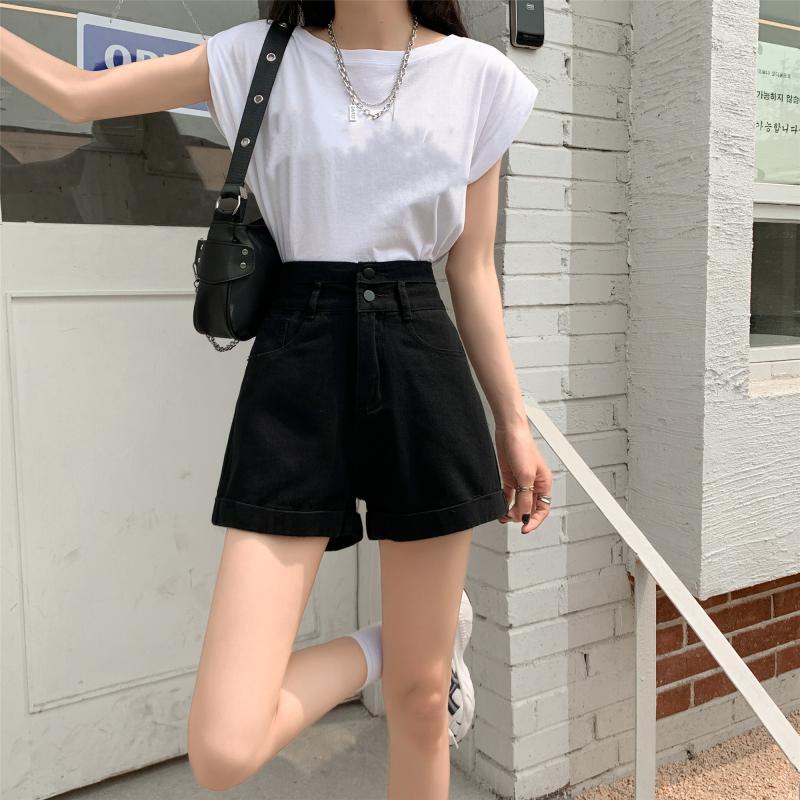 【韓国通販 dgo】ロールアップデニムショートパンツ 2colors ホワイト/ブラック(W1859)トレンドアイテム