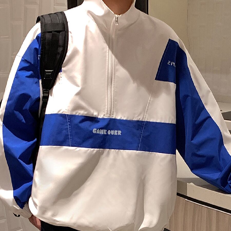 【韓国通販 dgo】ハーフジップバイカラーブルゾン 春秋 2colors ブラック/ホワイト(M1849)トレンドアイテム