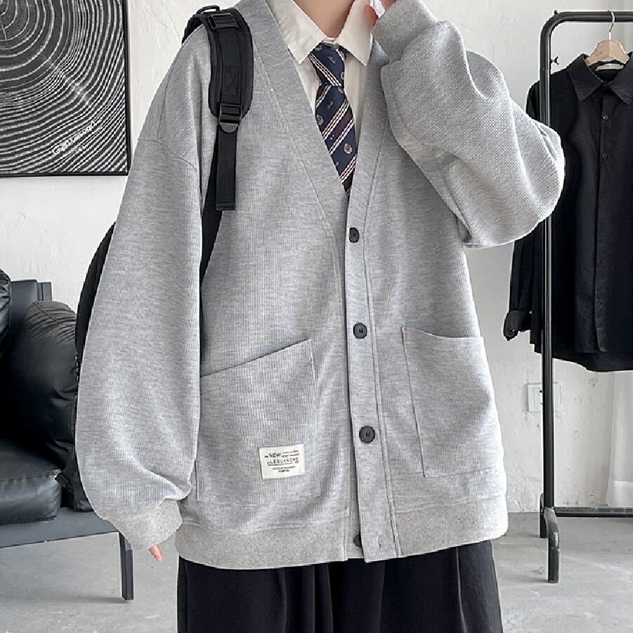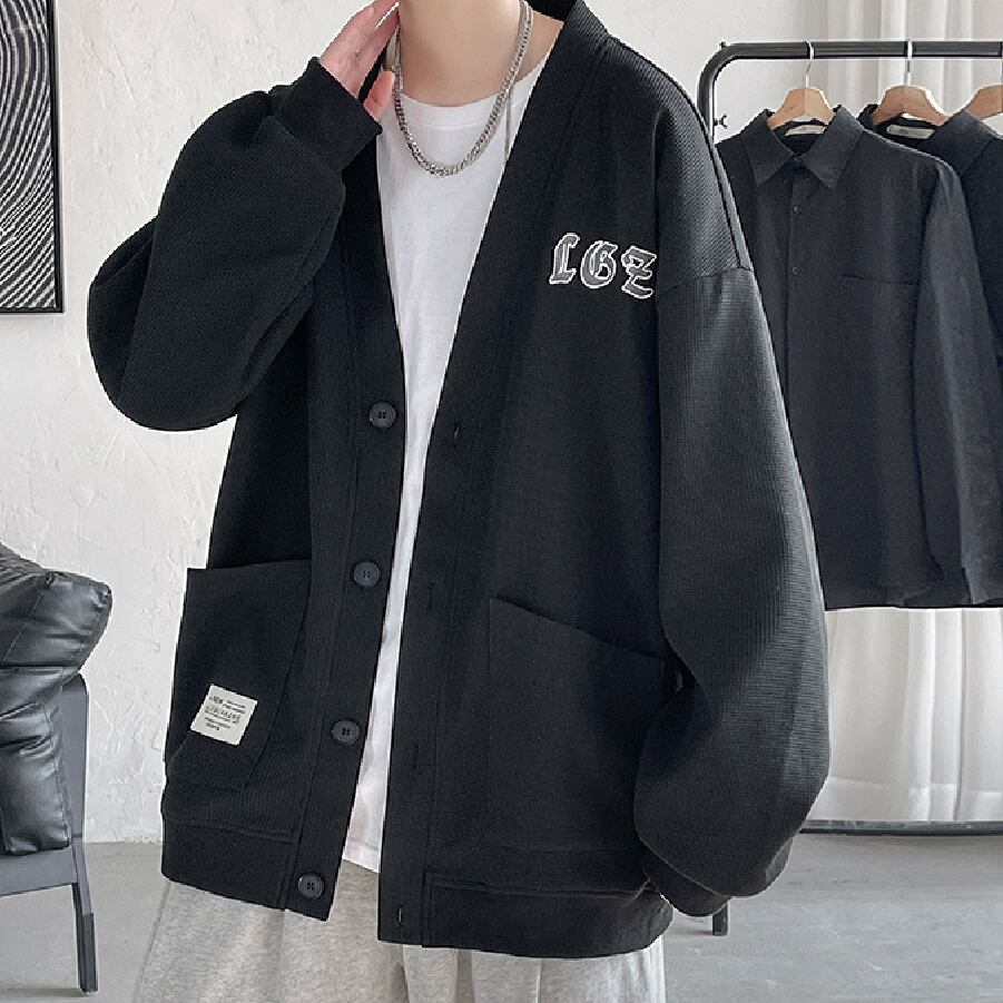 【韓国通販 dgo】ワンポイントニットカーディガン 2colors グレー/ブラック(M1842)