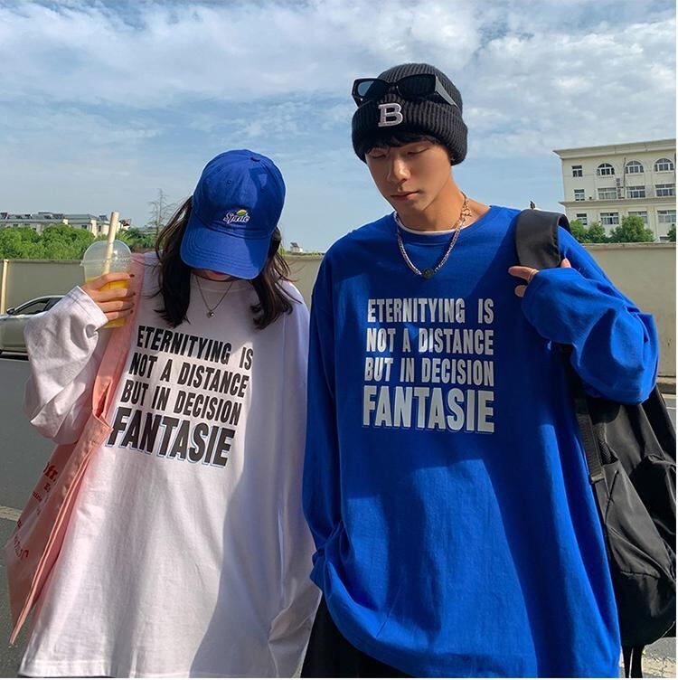 【韓国通販 dgo】ユニセックス オーバーサイズレタープリントロンT 3colors ホワイト/クラインブルー/ブラック(W1938)