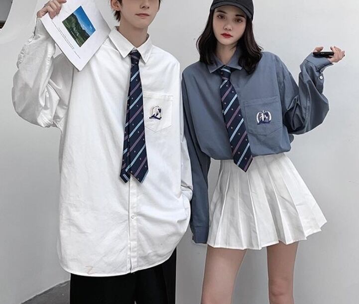 【韓国通販 dgo】ユニセックス スクールライクワンポイントシャツ ネクタイ付き 3colors ホワイト/グレーブルー/ブラック(W1931)