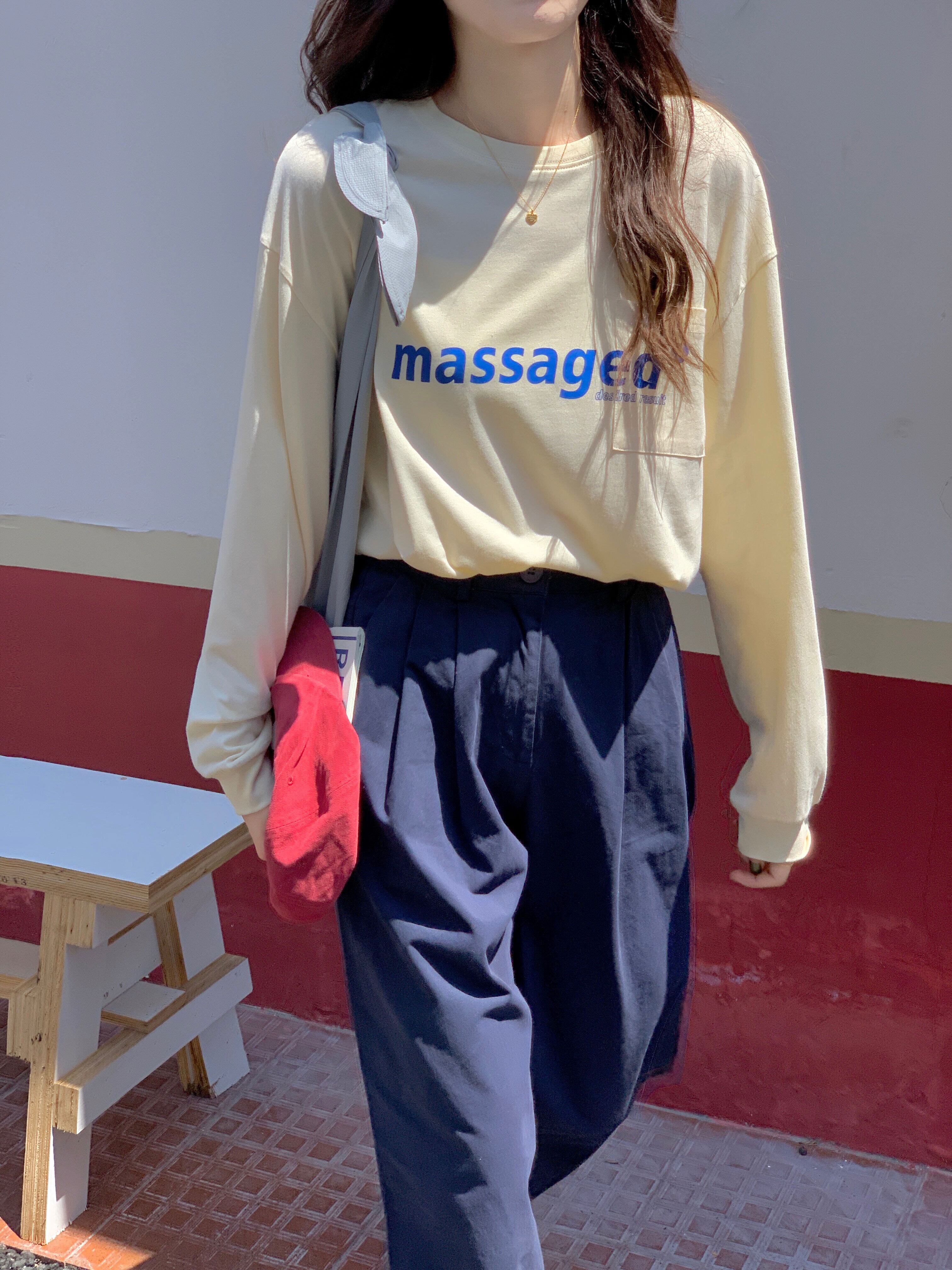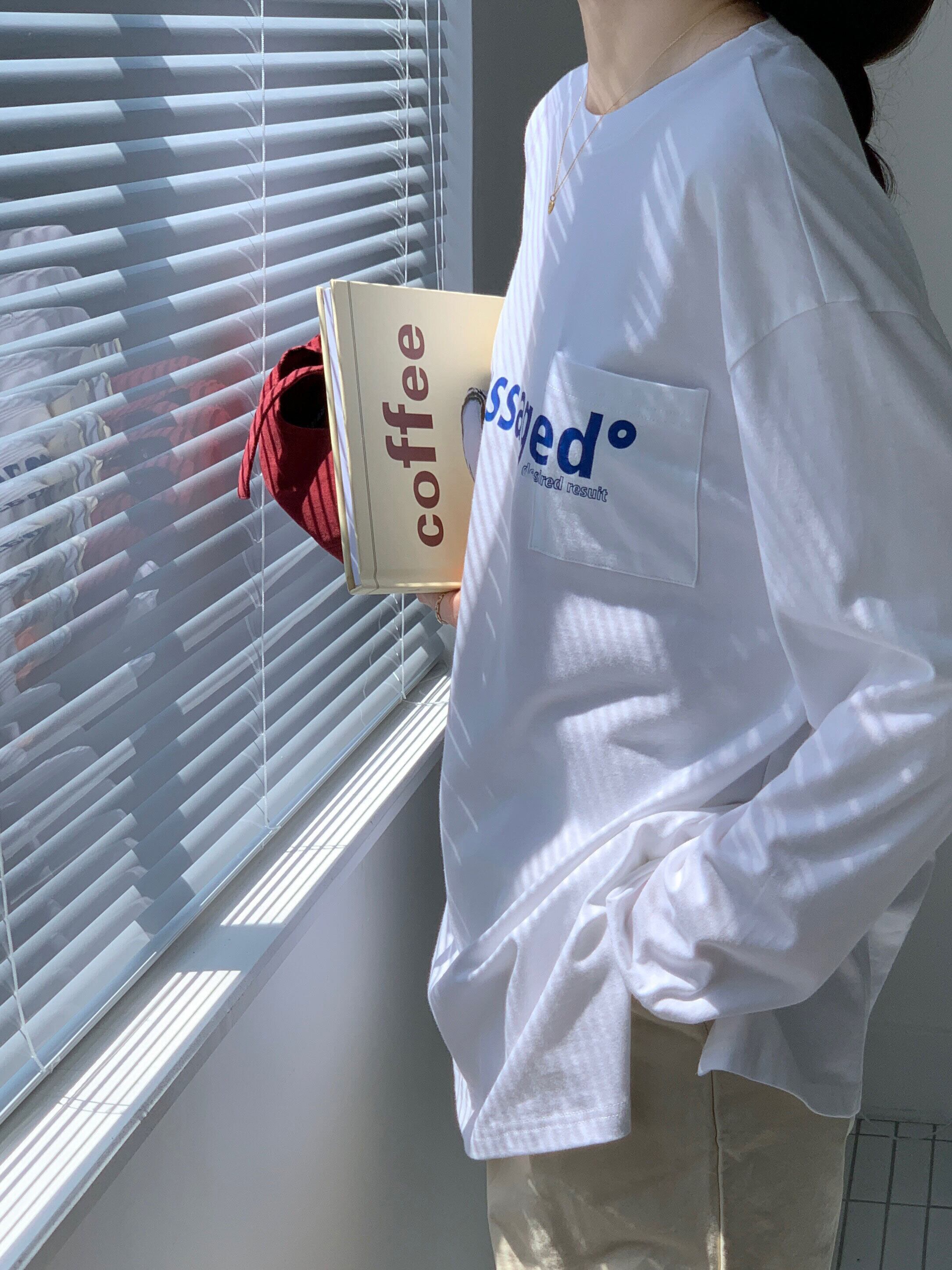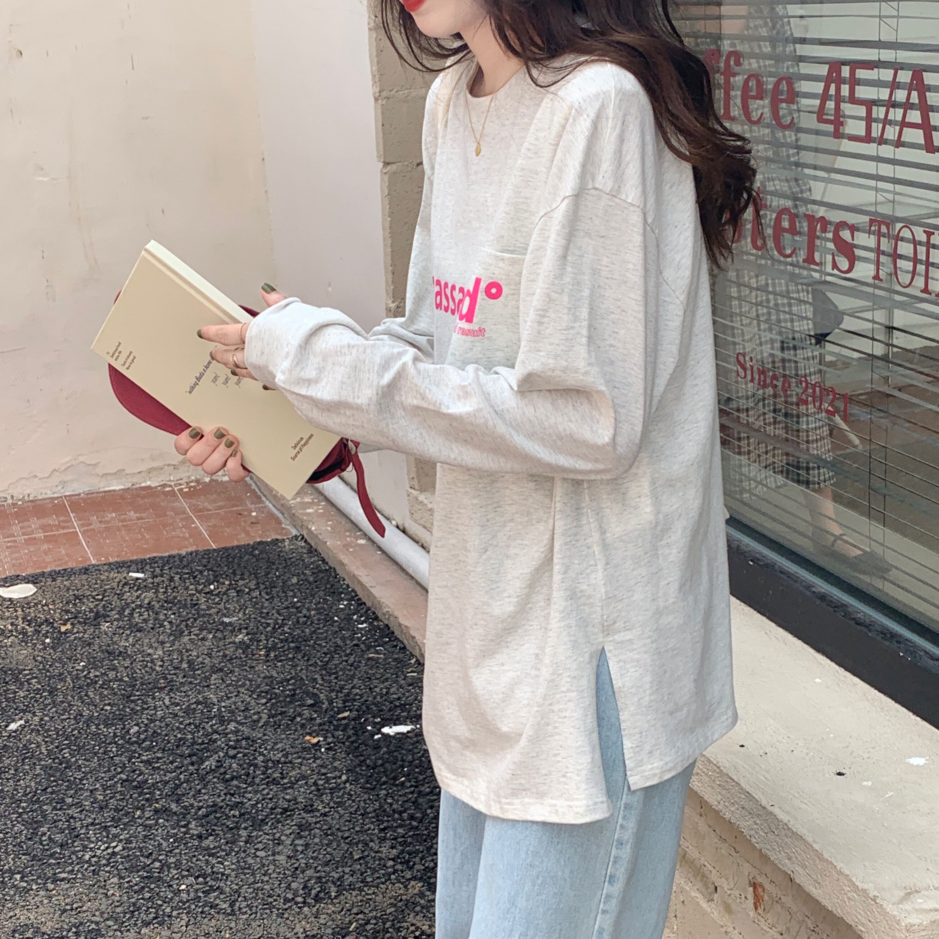 【韓国通販 dgo】ミディアム丈 英ロゴ スリットロンT 5colors グレー/レイクブルー/ホワイト/アイボリー/ピンク(W1922)