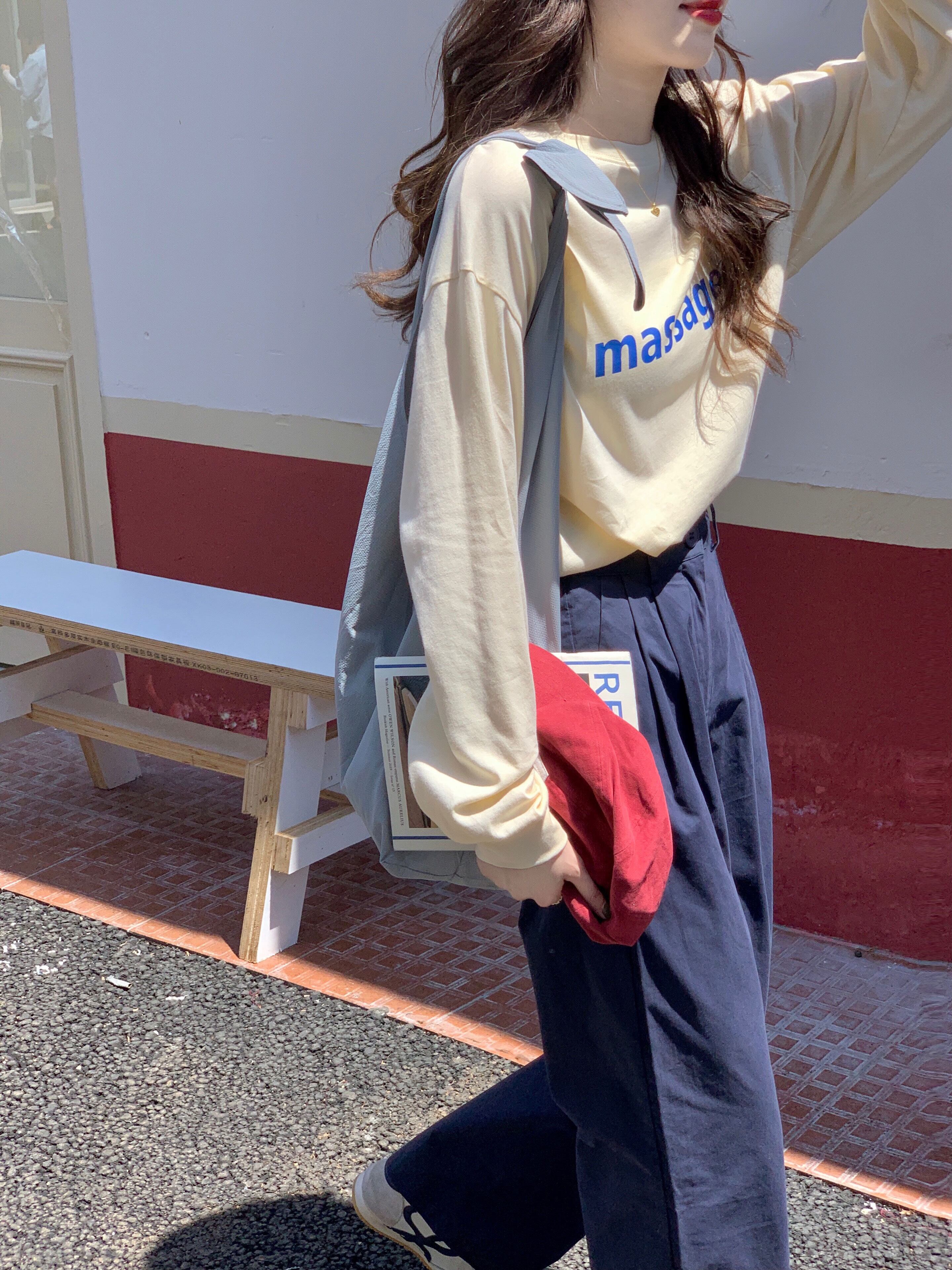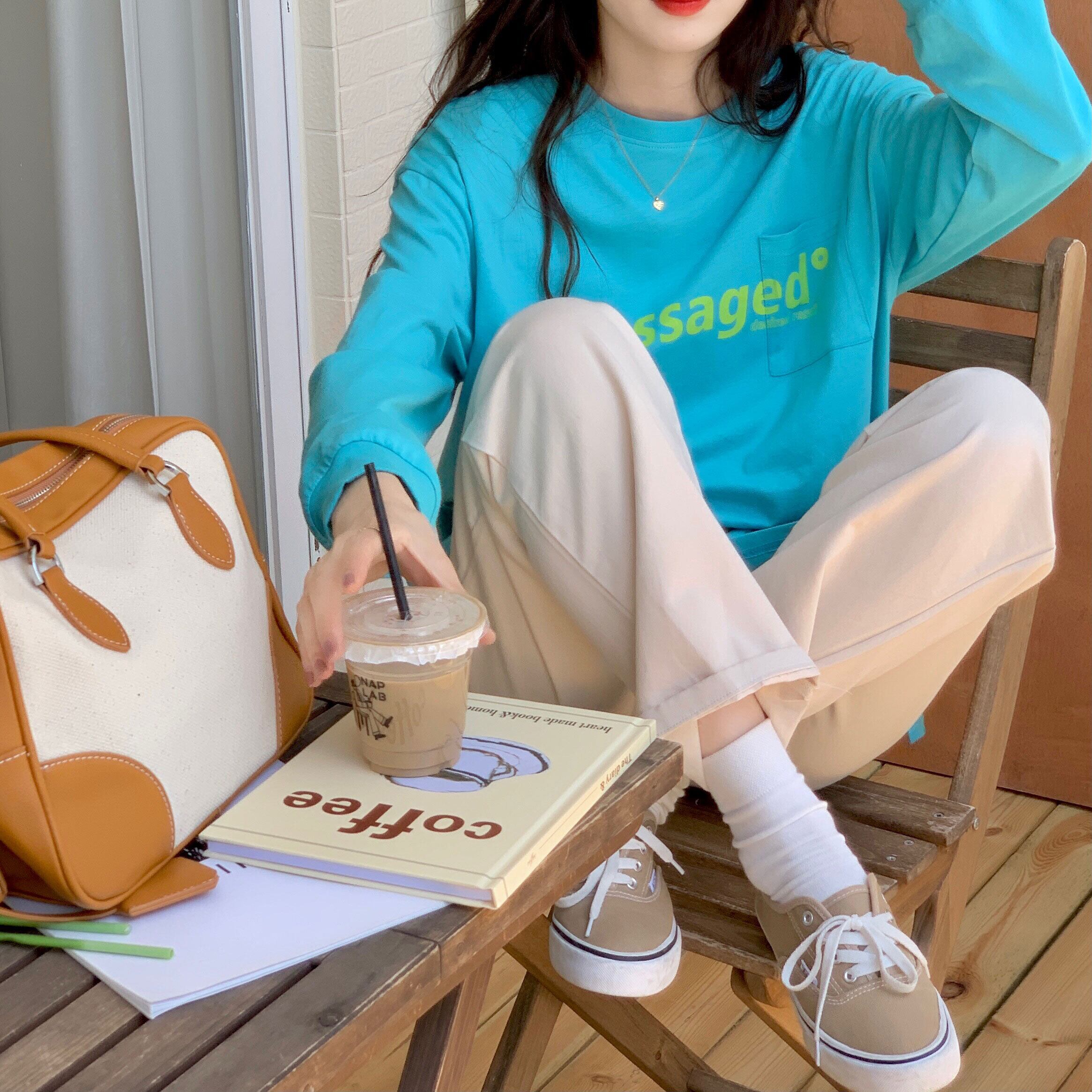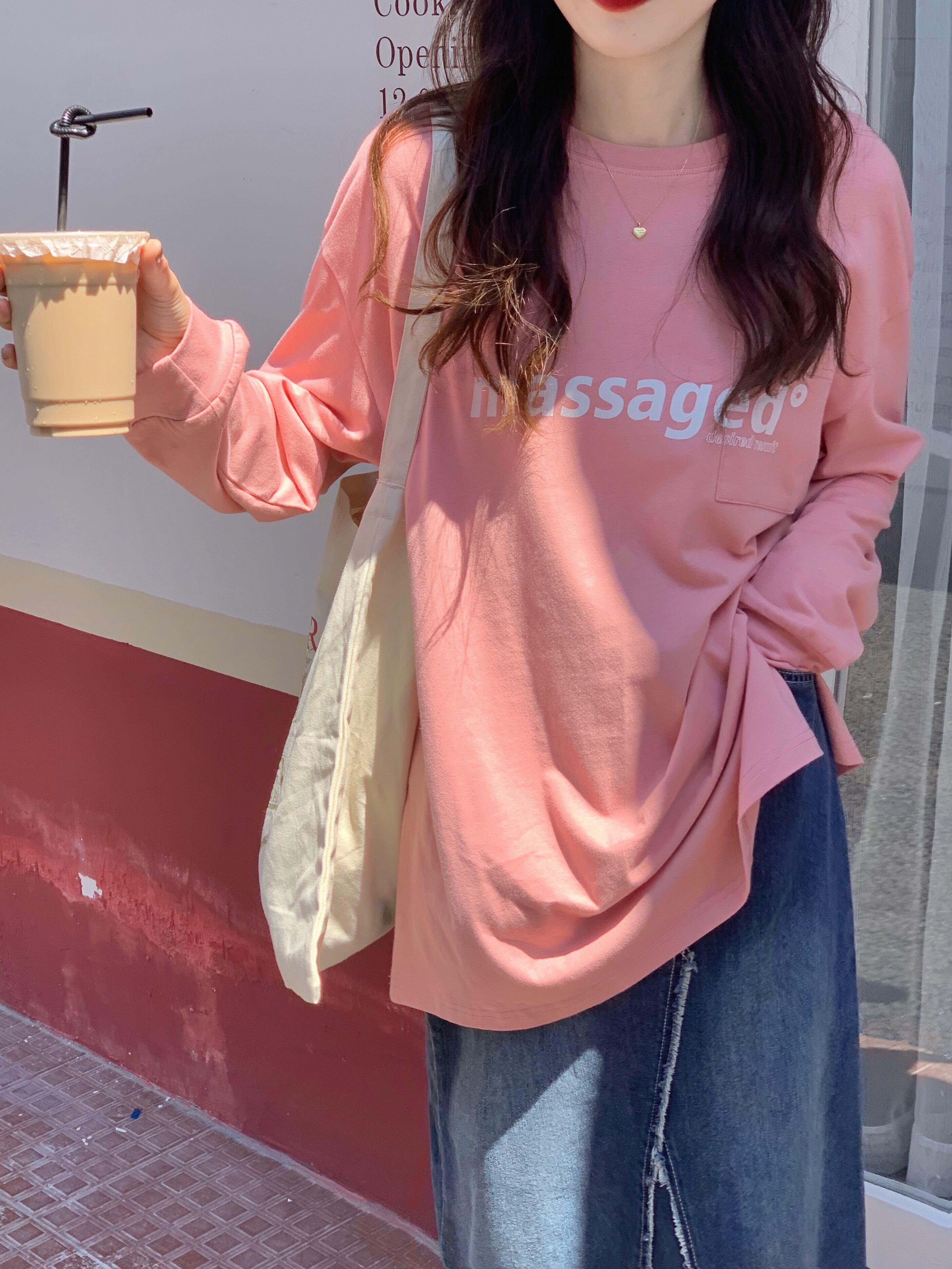 【韓国通販 dgo】ミディアム丈 英ロゴ スリットロンT 5colors グレー/レイクブルー/ホワイト/アイボリー/ピンク(W1922)
