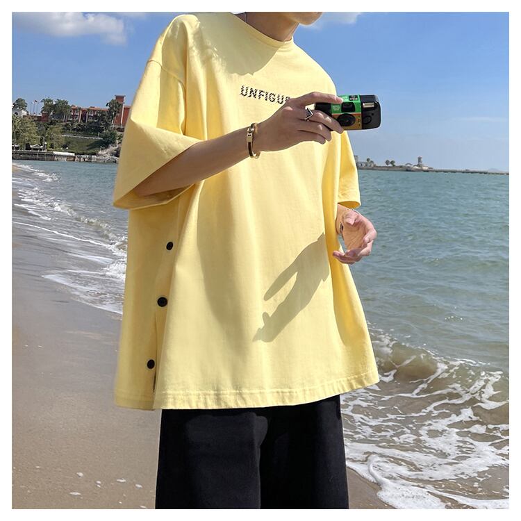 【韓国通販 dgo】サイドボタン オーバーサイズTシャツ 3colors ホワイト/ブラック/イエロー(M1960)トレンドアイテム
