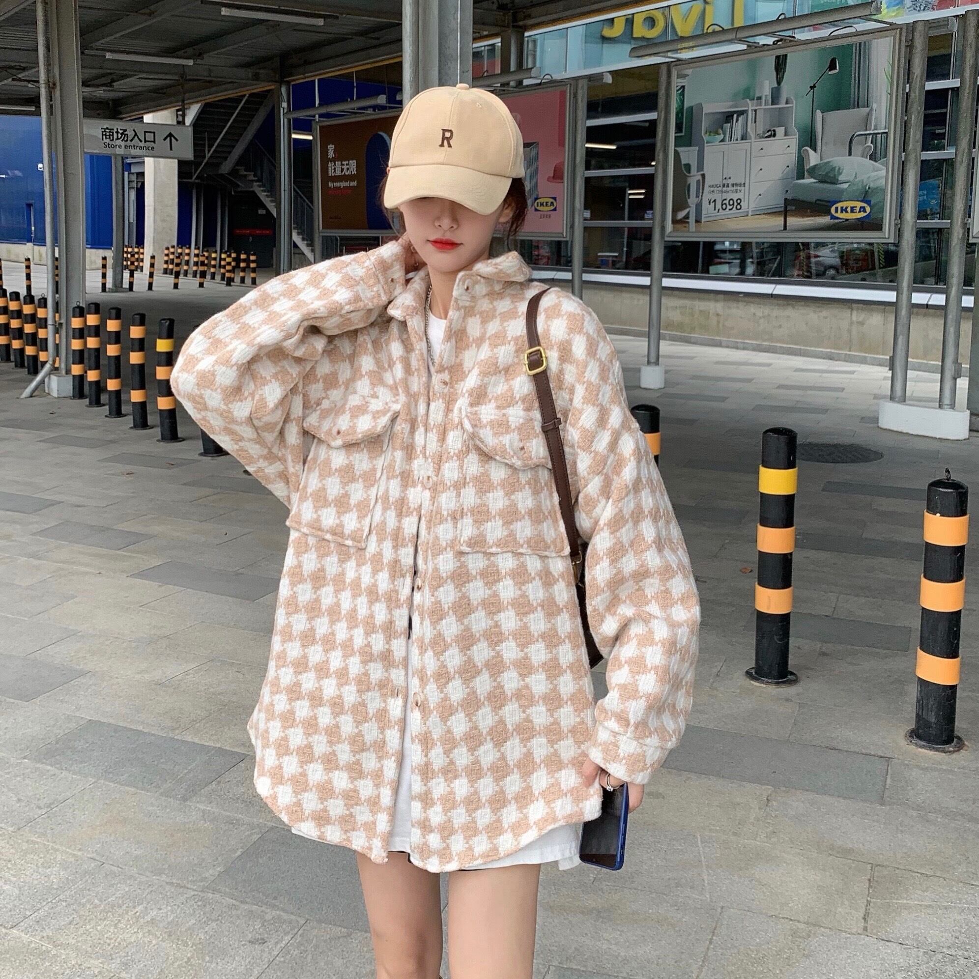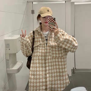 【韓国通販 dgo】アーガイルチェック ミディアム丈ジャケット 2colors ブラック/アイボリー(W1968)気分はジャケット!