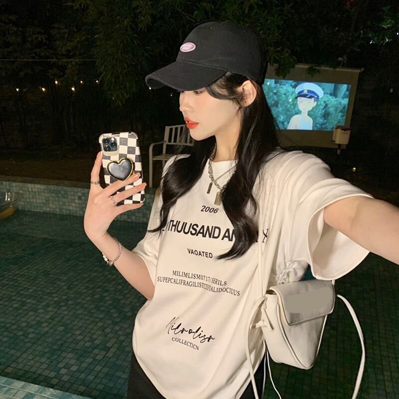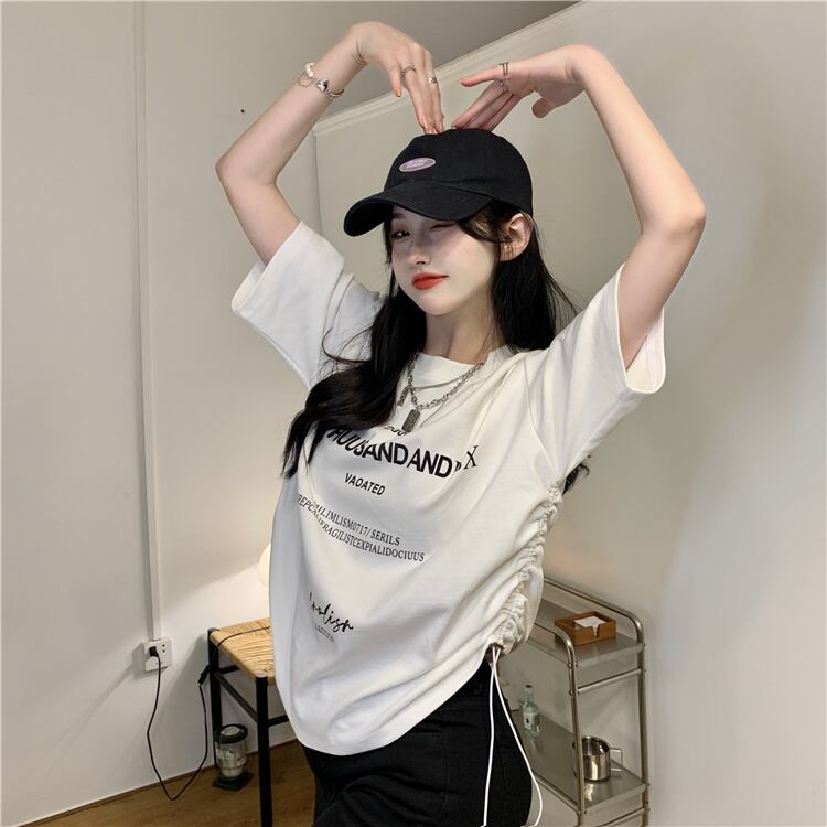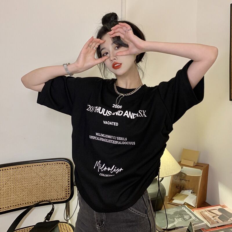 【韓国通販 dgo】ドローイングレタープリントTシャツ 春夏 2colors ホワイト/ブラック(W1969)トレンドアイテム