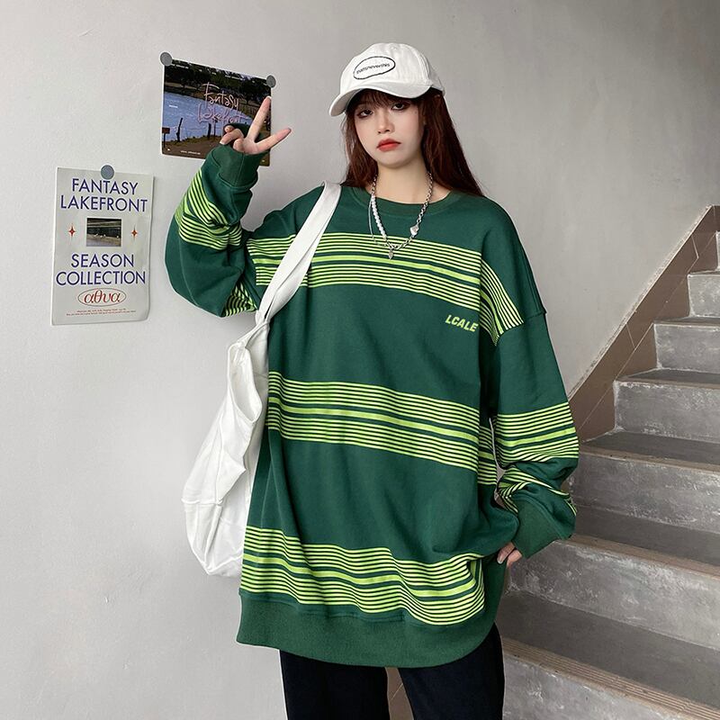 【韓国通販 dgo】ユニセックス コントラストカラー ストライプロンT 春秋 2colors ブラック/グリーン(M1984)