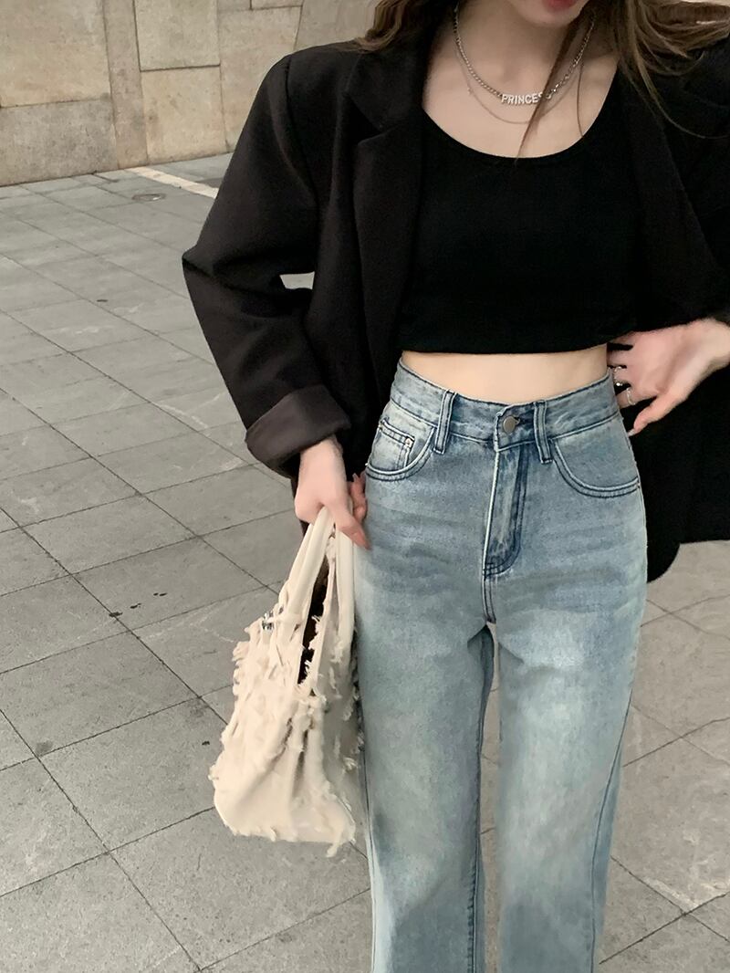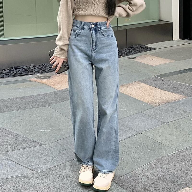 【韓国通販 dgo】ハイウエストストレートジーンズ 春秋 2types ライトブルー(W1992)