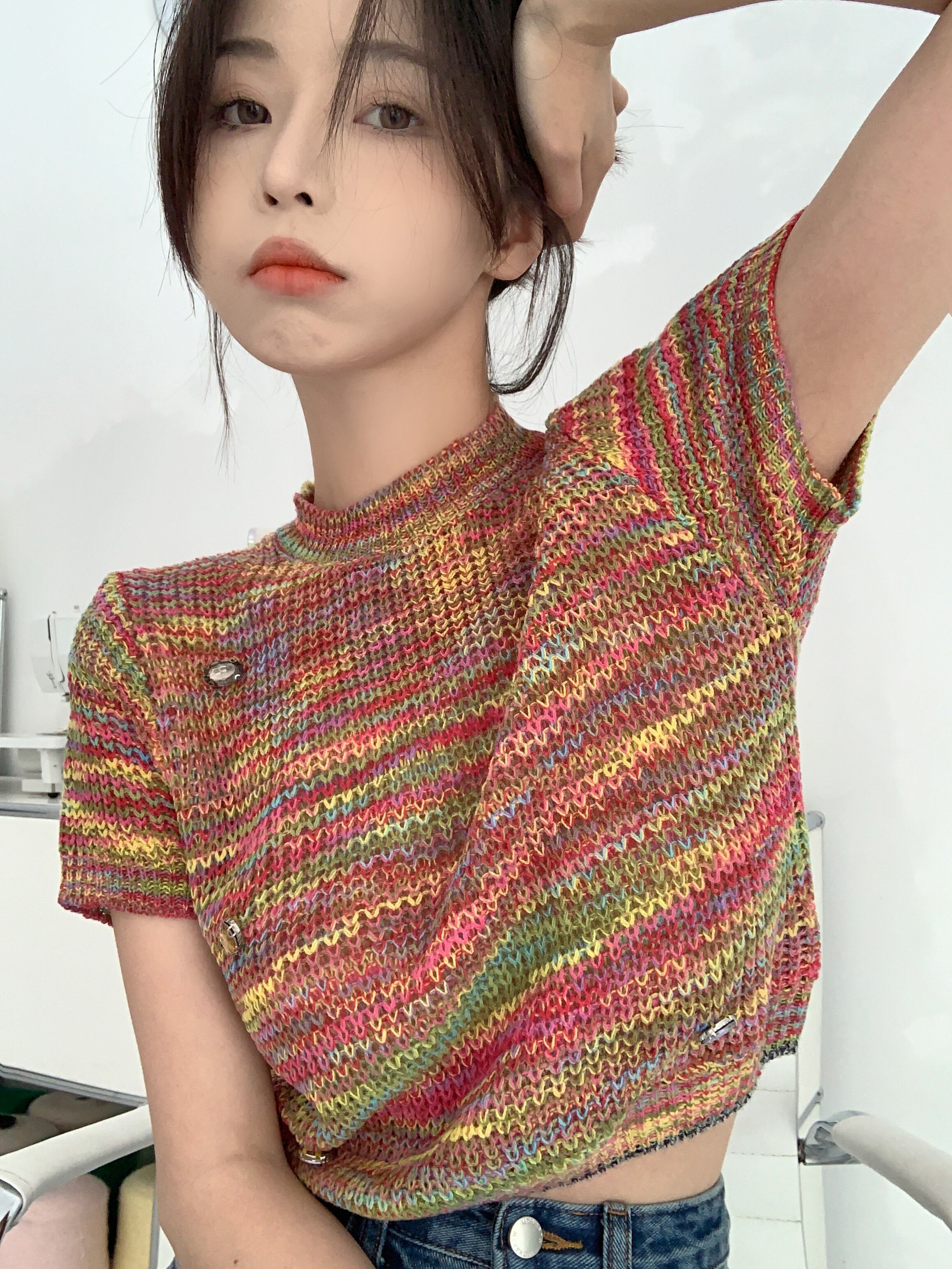 【韓国通販 dgo】プルオーバーカラフルニットトップス レインボー(W2003)センス溢れるファッションitem