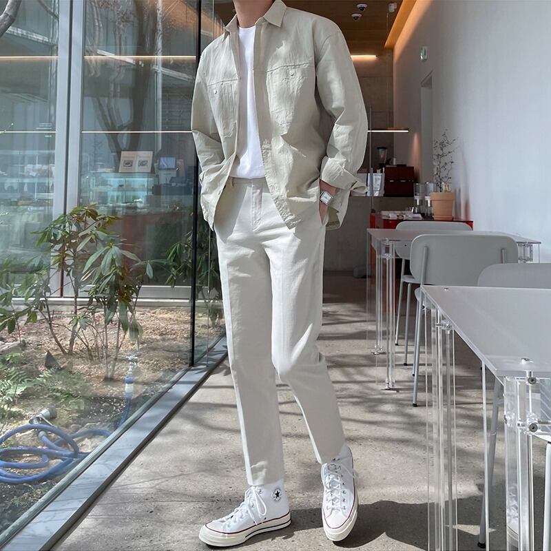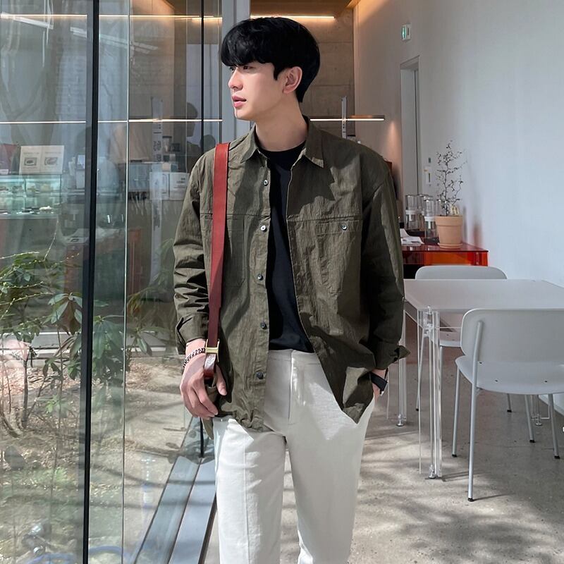 【韓国通販 dgo】リネンツーリングインナーシャツ 春秋 カーキ/ダークグリーン(M2006)センス溢れるファッションitem