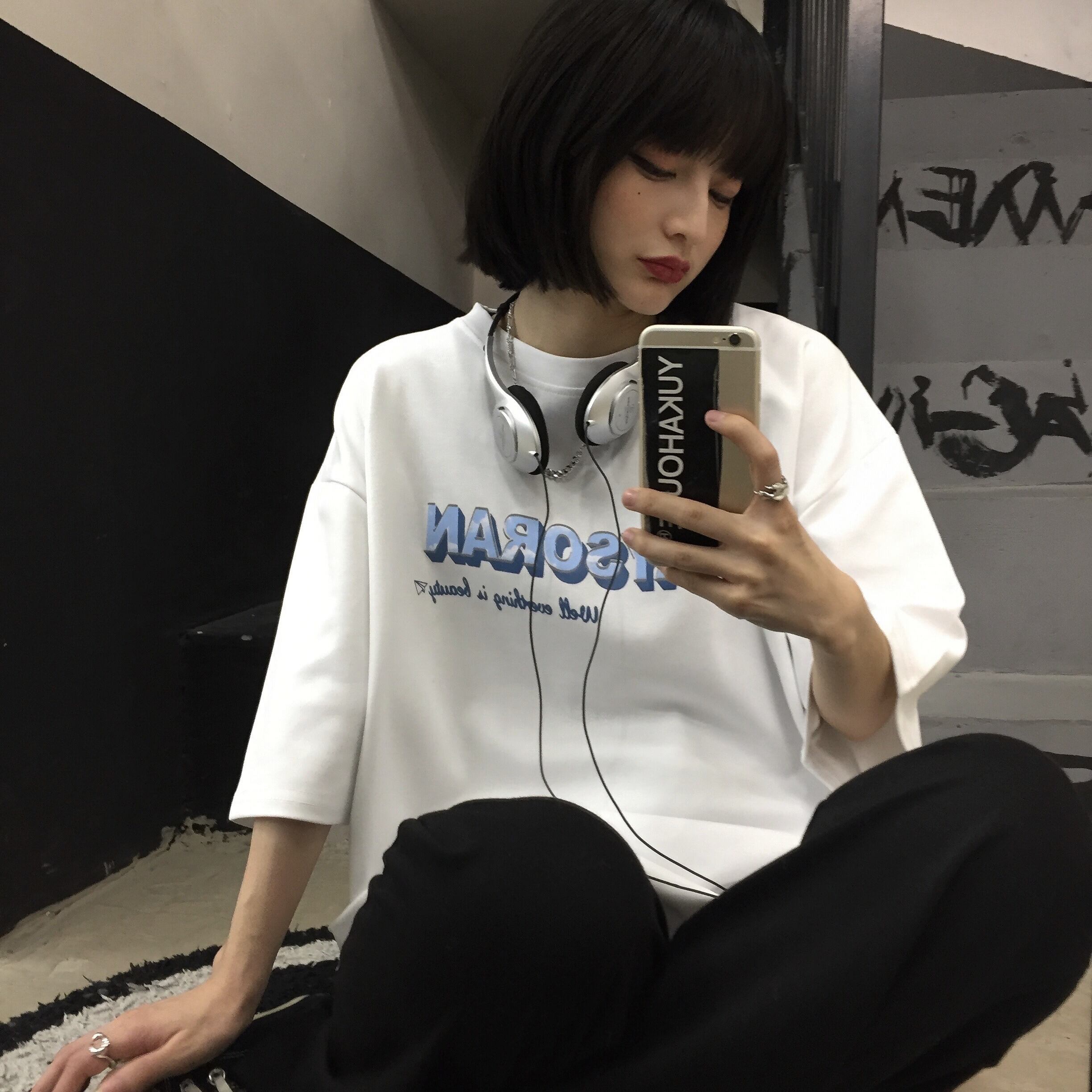 【韓国通販 dgo】ユニセックス 英文字プリントTシャツ 2colors ホワイト/ブラック(M2007)トレンドアイテム