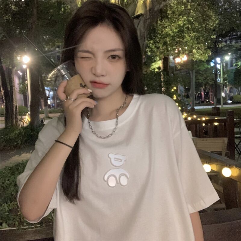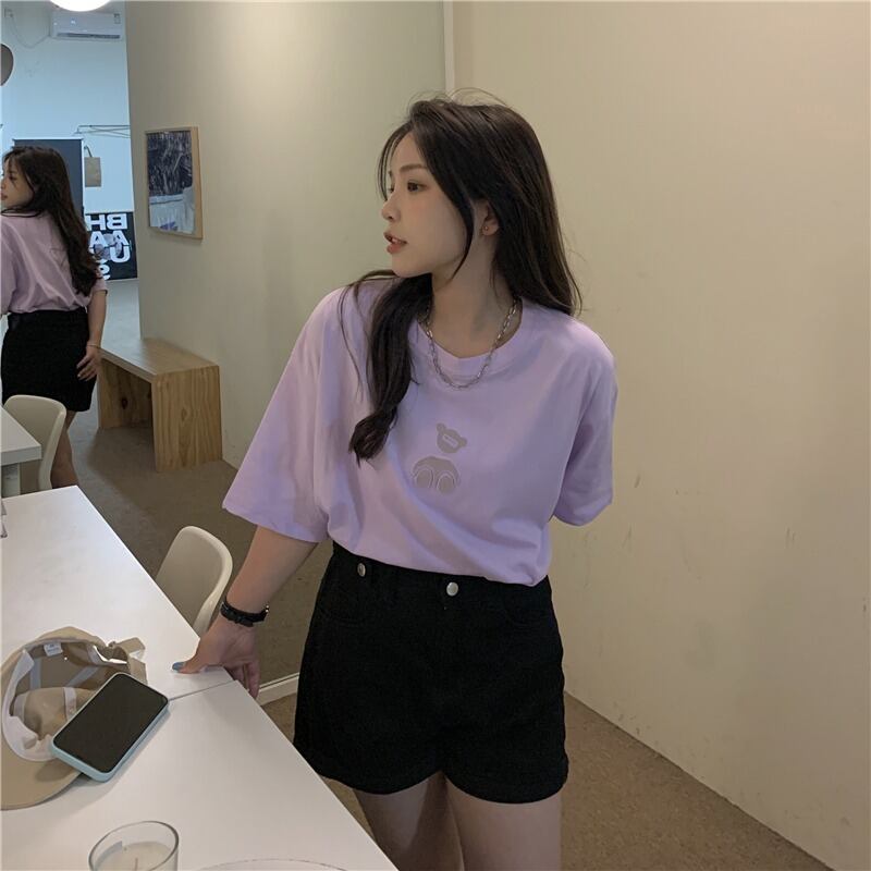 【韓国通販 dgo】ベアデザインTシャツ 3colors ピンク/ホワイト/パープル(W2021)