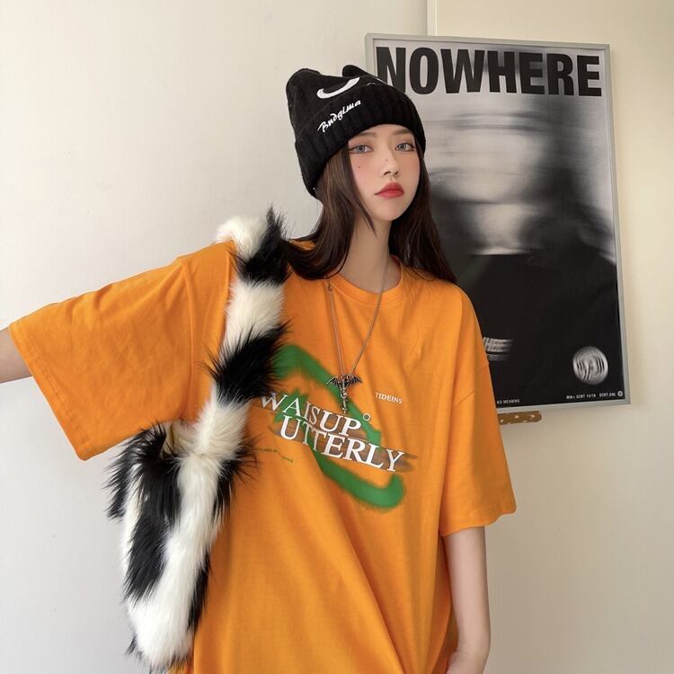 【韓国通販 dgo】ユニセックス 英ロゴTシャツ 3colors ブラック/ホワイト/オレンジ(M2024)
