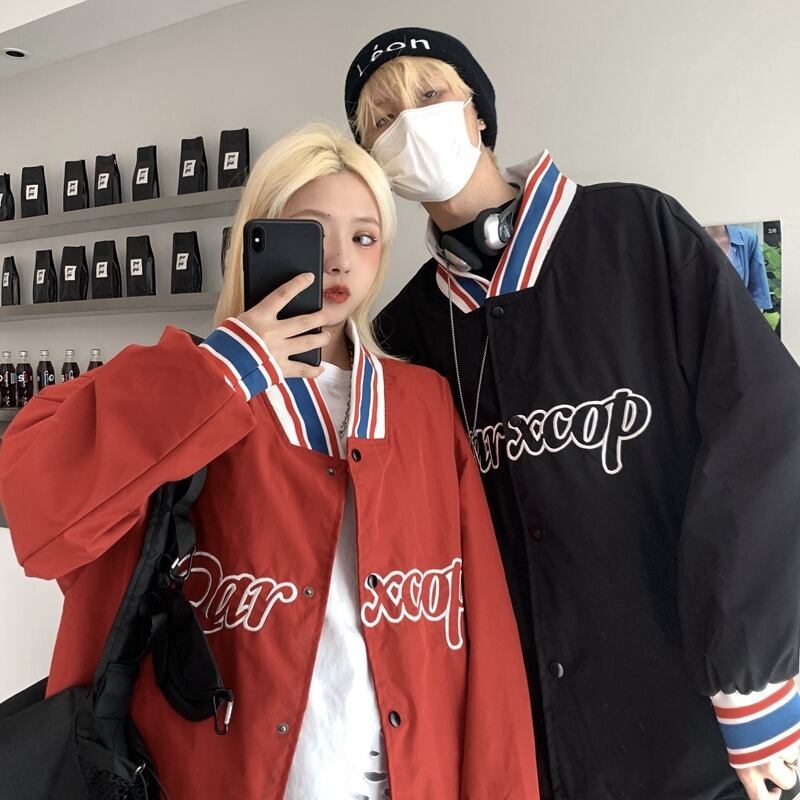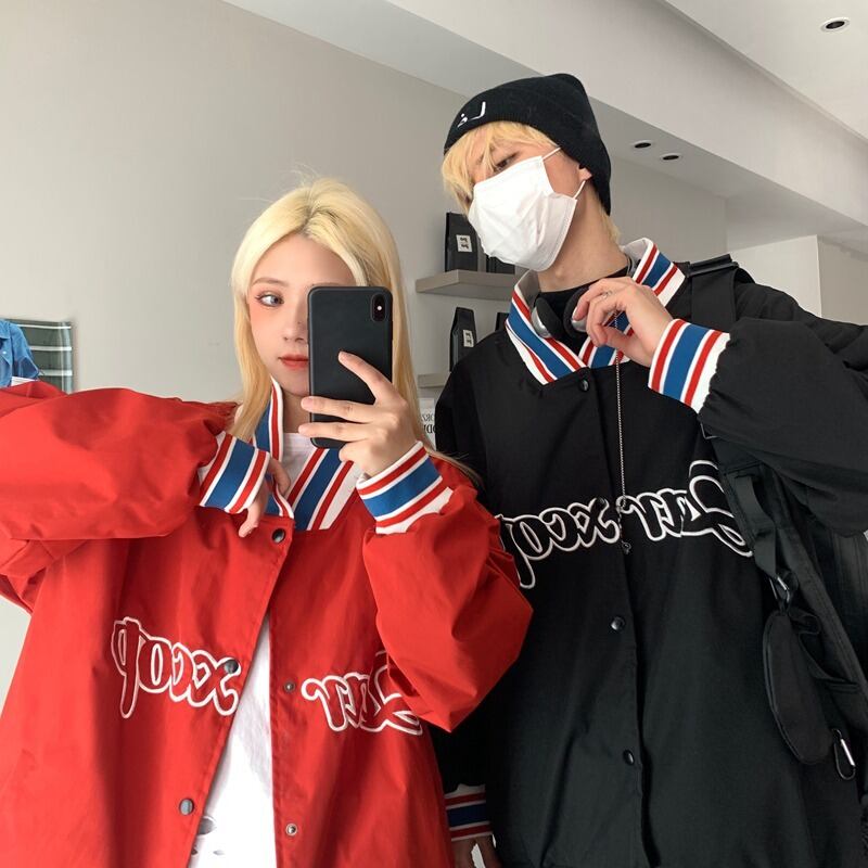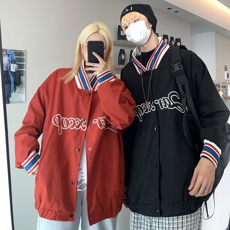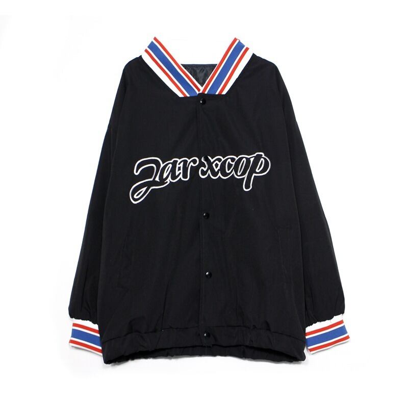【韓国通販 dgo】ユニセックス ストライプネック バーシティジャケット 2colors ブラック/レッド(M2025)気分はジャケット!