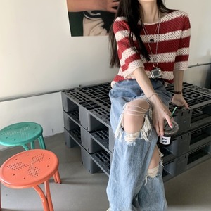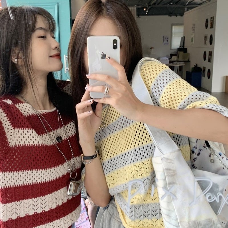 【韓国通販 dgo】アイレットニットトップス 4colors ブルー/ブラック/イエロー/レッド(W2028)