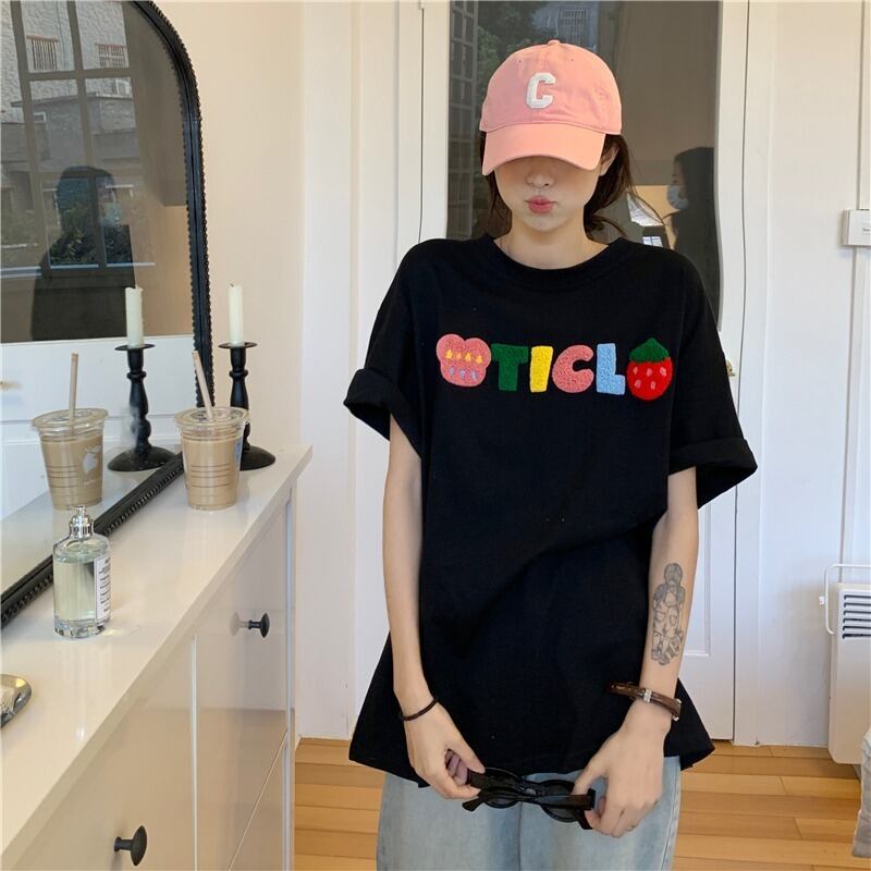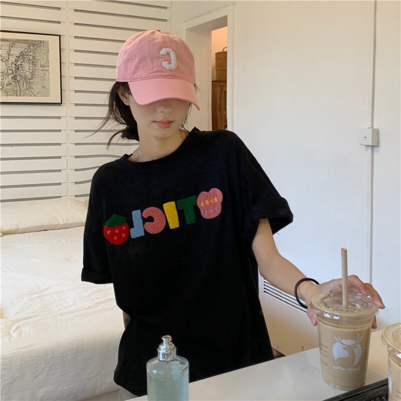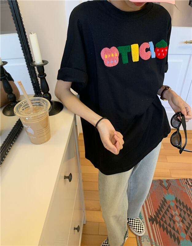 【韓国通販 dgo】カラフルロゴTシャツ 3colors ブラック/ホワイト/ローズレッド(W2041)