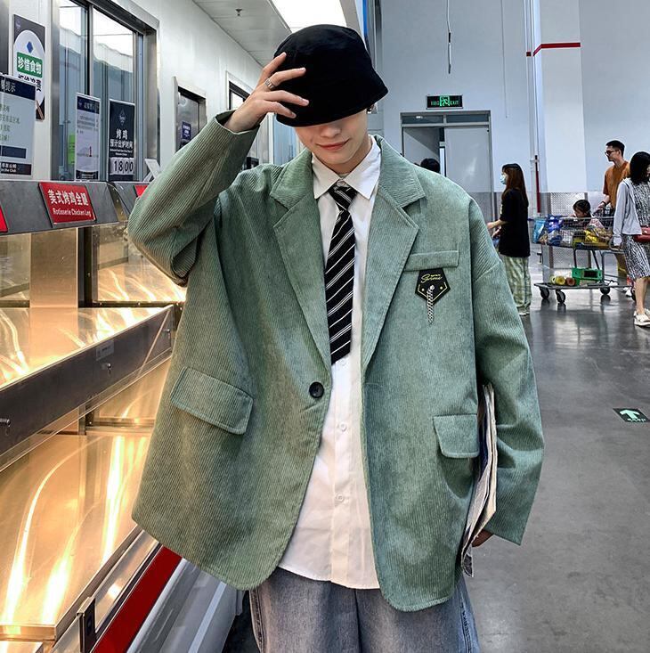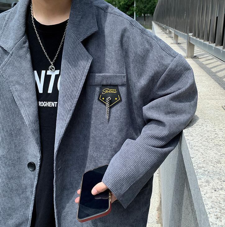 【韓国通販 dgo】コーデュロイワンポイントジャケット 春秋 3colors グリーン/グレー/ブラック(M2044)気分はジャケット!