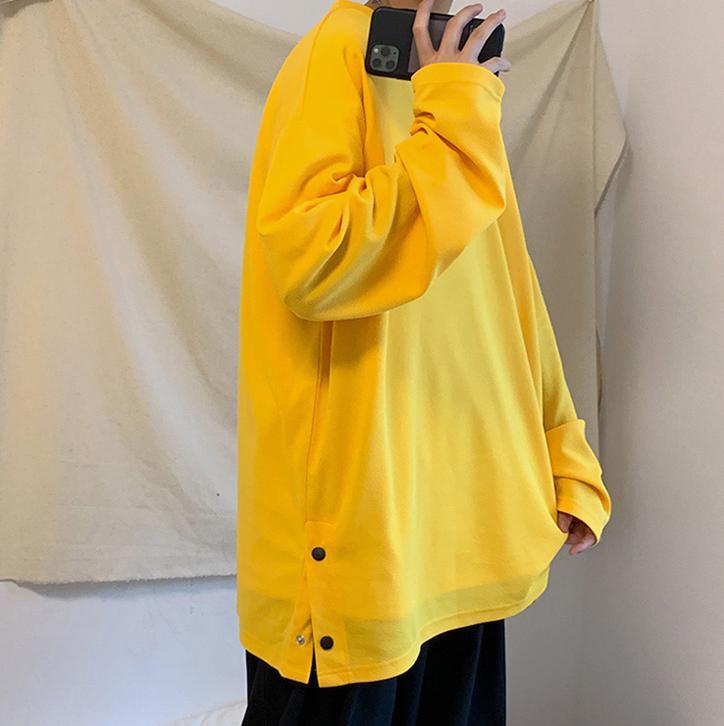 【韓国通販 dgo】ユニセックス サイドスリットロンT 4colors ホワイト/ブラック/イエロー/グレー(M2049)トレンドアイテム