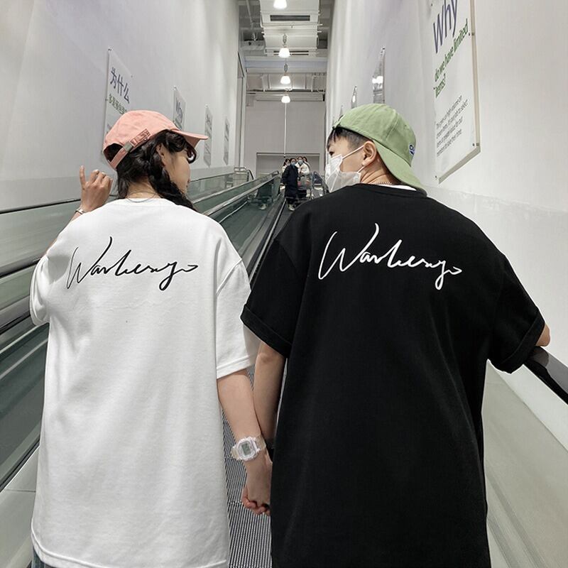 【韓国通販 dgo】ユニセックス バックレタープリントTシャツ 3colors クラインブルー/ホワイト/ブラック(M2098)