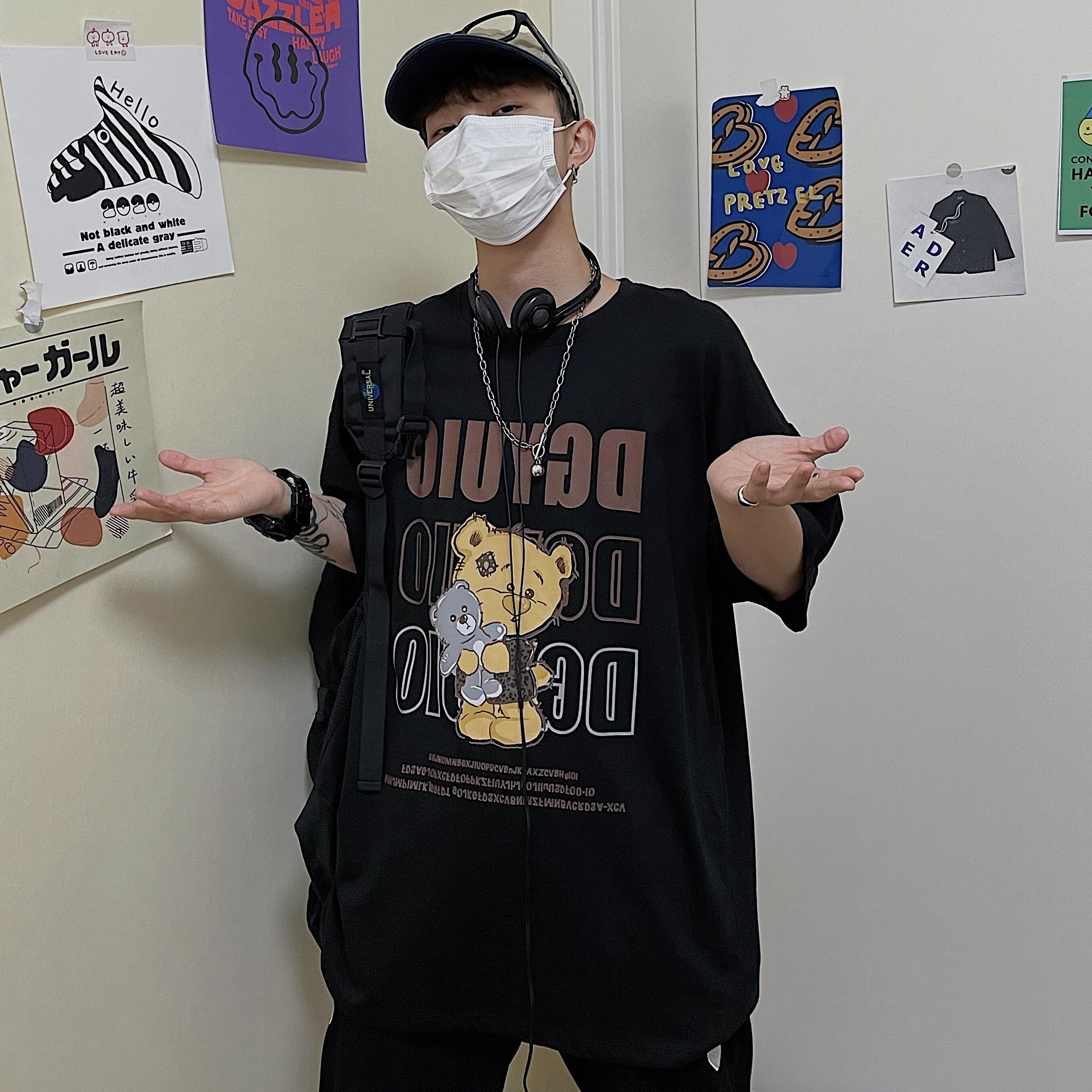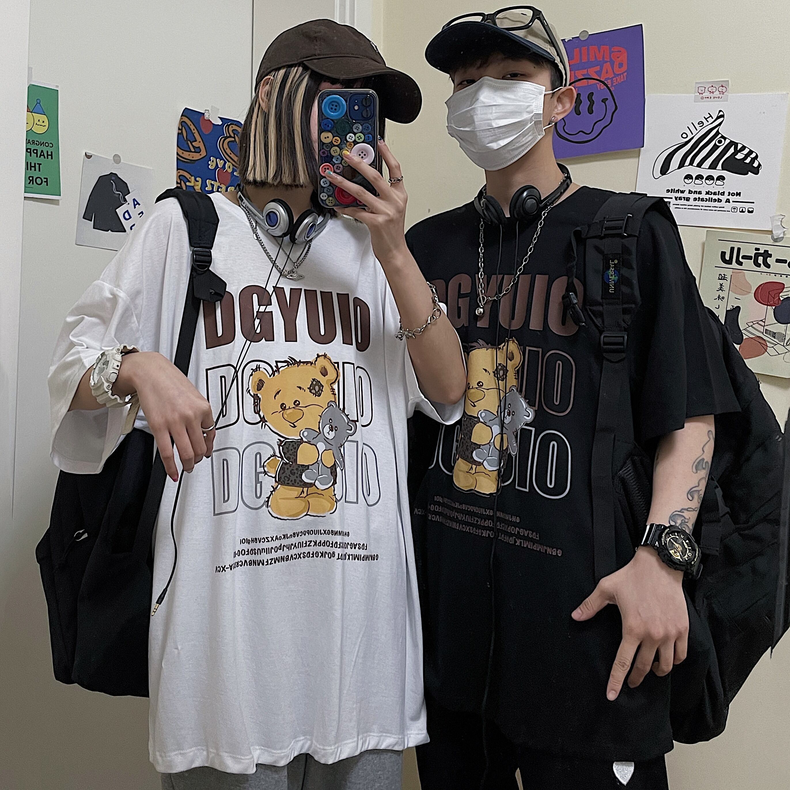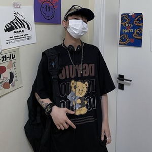 【韓国通販 dgo】ユニセックス オーバーサイズベアデザインTシャツ 2colors ホワイト/ブラック(M2091)