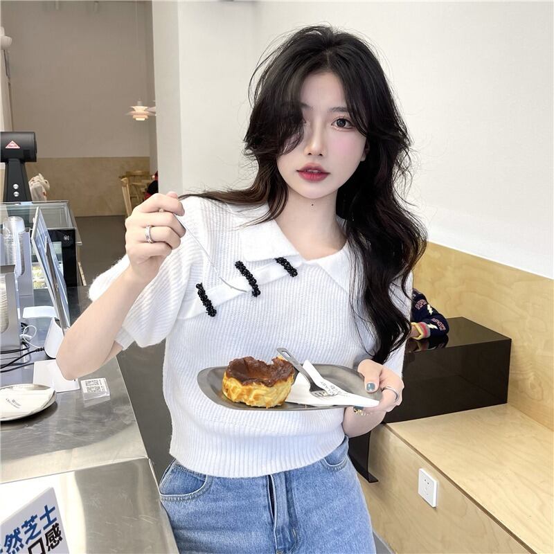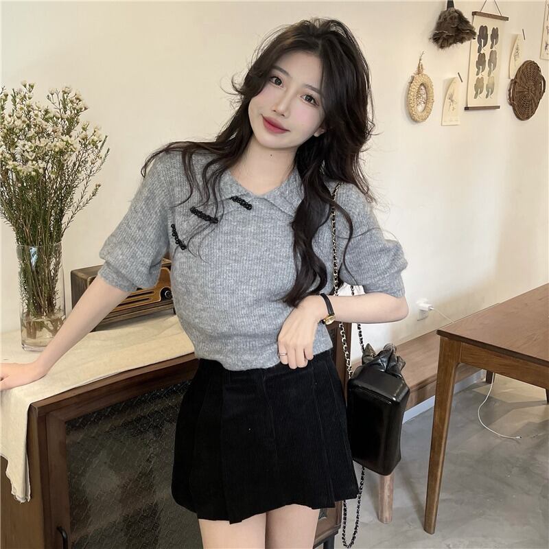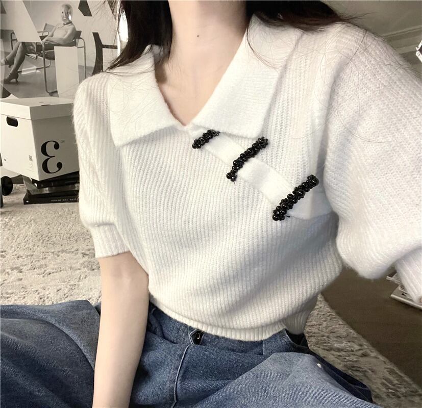 【韓国通販 dgo】パフスリーブショートポロニット 春夏 2colors(W2074)