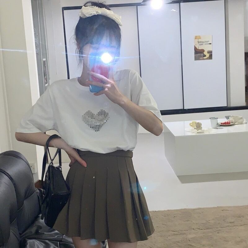 【韓国通販 dgo】ハートグラフィックTシャツ 春夏 2colors(W2072)