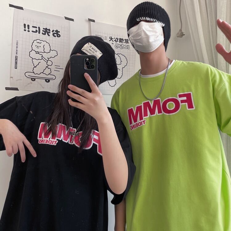 【韓国通販 dgo】ユニセックス 英ロゴオーバーサイズTシャツ 3colors 蛍光グリーン/ブラック/ホワイト(M2076)センス溢れるファッションitem
